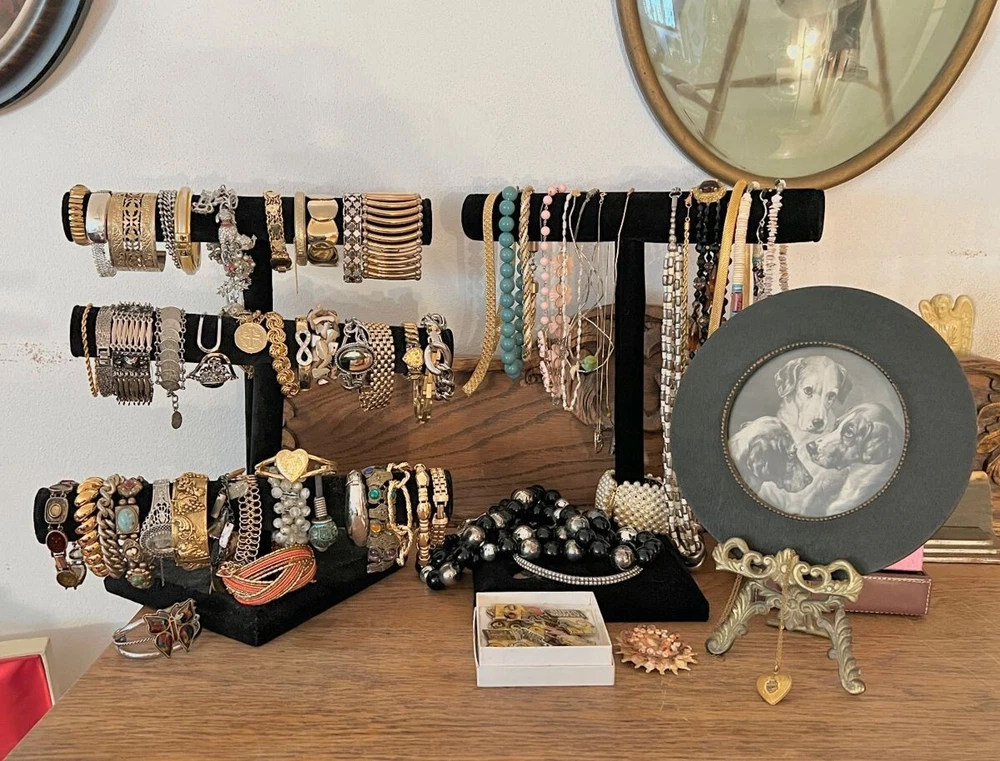 Metal Purity: Unknown Stone Creation: Unknown Material: Mixed Materials Type: Mixed Lot Lot Includes: Bangle, Beads, Bracelet, Charm, Earrings, Necklace, Ring Metal: Unknown Seller Notes: “intact and ready to wear” Country/Region of Manufacture: Unknown Color: Multicolor Base Metal: Mixed Metals Era: Undated Department: Women Brand: Estate