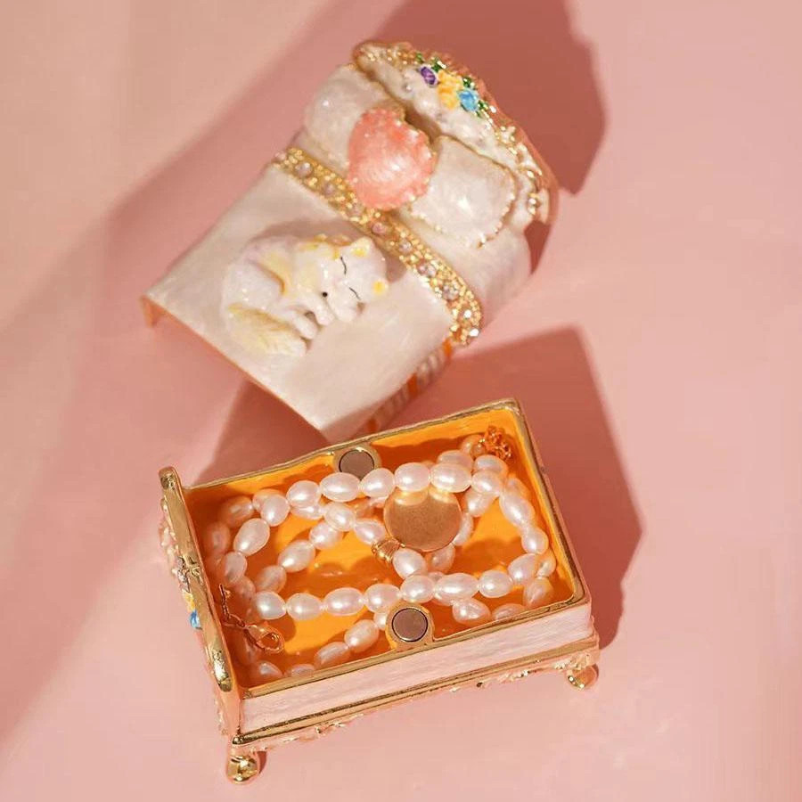 Jewelry Box Metal Multicolor Cat Bad Small Romantic Carved Enameled Magnetic
