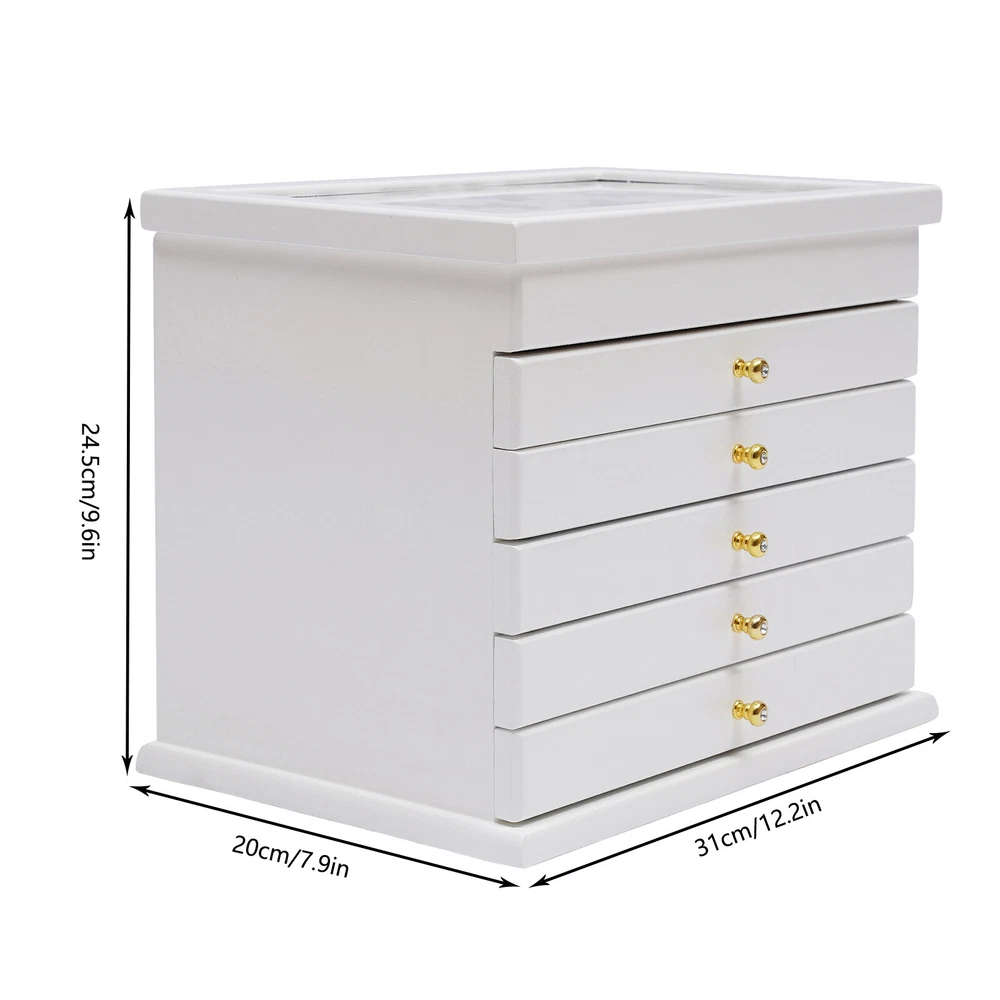 Jewelry Box Organizer for Women Girls Large Jewelry Storage Case with Drawers🔥 Specifications: Colors: white/ Walnut Color Layer: 6 layers Types: without mirror Material: Wooden Sizes: 31x20x24.5 cm/12.2*7.9*9.6 inch Features: - This is a retro wooden jewellery box. Fashionable and practical. - Made of high quality wood. - Can hold many kinds of jewelry. - No need to assemble. - A great gift for your mother/girlfriend/sister. Package included: 1 x Wooden Jewellery Box Payment Delivery details Terms of sales About us Contact us Payment We accept ebay payment 。 Fees such as import duties, taxes are not included in the item price or shipping costs. These charges are the buyer's responsibility. Delivery details Shipping: 2-9 working days to: USA Terms of sales We maintain high standards of excellence and strive for hundred percent customer satisfaction. Feedback is very important to us. We hope that you contact us immediately before you give neutral or negative feedback, so that we can address your concerns. It is impossible to address issues if we do not know about them! About us Your satis faction is our ultimate goal. We work hard to earn your trust and future business. Our certified technicians have tested each item before shipping. The unit comes with 1 year limited warranty on all manufacturing defects. a) If you receive a defective item, you may return it or ask for a discount. Please contact us within 14 days after you receive the package. b) What you returned must be intact and in its original packaging as re? u. Customer is responsible for shipping costs of the returned item. c) We will cover the cost of shipping back t with the shipping rate indicated in the registration page. We will send you a new unit or refund the full payment you paid. Thank you. Contact us Business Hour Business Hour: Monday To Friday: 8:30 AM to 5:00 PM (Beijing China time) Due to time zones, our reply to your questions may not be immediately. But within above working time, we will reply your email within 24 hours. If it's non-workdays, please kindly be patient and wait till Monday. Please contact us with ebay message. Please feel free to contact us if you have any questions. Monday To Friday: 8:30 AM to 5:00 PM (Beijing China time) Due to time zones, our reply to your questions may not be immediately. But within above working time, we will reply your email within 24 hours. If it's non-workdays, please kindly be patient and wait till Monday. Please contact us with ebay message. Please feel free to contact us if you have any questions.