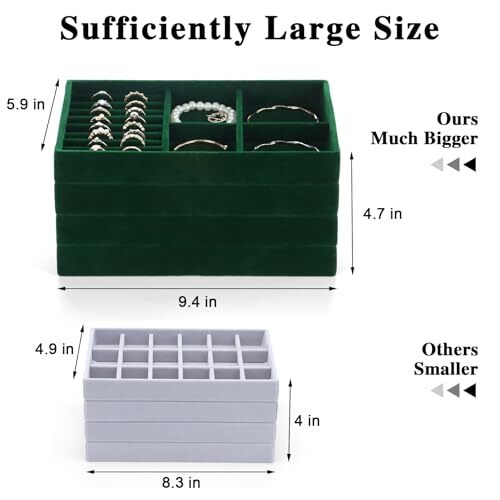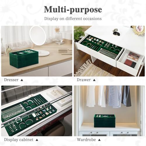 Menu 1. We require immediate payment. 2. We currently accept payment via eBay managed payments only. 3. Once payment is cleared, we will dispatch your shipment within 1-3 business days. Please refer to the "Shipping" tab for more information regarding shipping speed to your destination. Jewelry Drawer Organizer, Drawer Jewelry Organizer for Drawer Inserts Velvet Jewelry Tray Organizer Stackable Jewelry Tray Earring Necklace Organizer Tray and Storage for Women, Green Product description 4 Set Jewelry Tray: The jewlery tray has 4 stackable jewelry trays, including ring holder display (1pc), 18 grid earrings organizer tray (1pc), necklace organizer tray (1pc), 9 grid tray (1pc), easy to store rings, earrings, studs, necklaces, pendants, bracelets, watches, brooches, hair accessories, etc. You can visually see all the jewelry, quickly select jewelry to match the outfit and save time Removable Dividers: The jewelry drawer organizer inserts has removable compartments, you can adjust the size of this jewelry tray organizer's compartments to meet your individual storage needs, each compartment is carefully designed to ensure that jewelry display tray fits all sizes of jewelry and keeps the jewelry organized, neatly and beautifully Velvet Jewelry Tray: This jewerly tray is made of high quality plush and strong composite panels, the softness of lining is good, can effectively protects the jewelry from scratches and other damage. The jewelry organizers and storage trays is durable and has a delicate vintage appearance, which is the perfect choice for your daily jewelry storage in your home Jewelry Organizer: The size of jewelry organizer for drawer is 24*15*3cm (9.4*5.9*1.1inch), the jewelry organizer tray is easy to stack and you can also insert jewelry trays into a drawer, saving space for your dresser or cabinet. The jewelry trays will not slide. In addition, it can also be used as a perfect display of jewelry, not only for home, but also for jewelry collection in jewelry stores Ideal Present: Imagine, on Valentine's Day, Mother's Day, Thanksgiving, Christmas, New Year, wedding, birthday, anniversary, party, this vanity tray is just like a surprise to your hand, you will be happy, you no longer have to worry about those tangled jewelry, black jewelry organizer is like an elegant angel, dress up your room, bring all kinds of comfort to your life PLEASE MESSAGE US IF YOU HAVE ANY OTHER QUESTIONS, AND MANY THANKS FOR READING ALL OF THIS. Copyright ©#. All Rights Reserved.