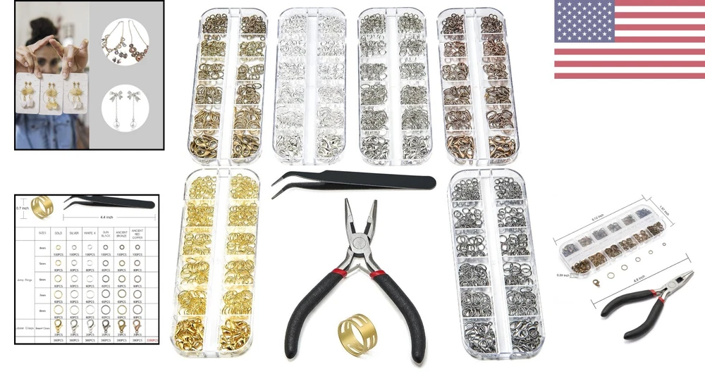 Jewelry Findings Kit - 2280PCS Jump Rings and Lobster Clasps, Pliers & Tweezers ‹ › ‹ › ‹ › ‹ › ‹ › ‹ › ‹ › ‹ › ‹ › Jewelry Findings Kit - 2280PCS Jump Rings and Lobster Clasps, Pliers & Tweezers Value Kit: 6 boxes of jewelry making set contains 2280PCS jump rings and lobster clasps 1PCS needle-nose pliers, 1PCS jump rings opener ring, and 1PCS picking tweezers Various Colors and Sizes: Jump rings and lobster clasps kit come in 6 colors: Gold, Silver, White, Black, Ancient bronze, Ancient red copper Jump rings sizes include 4mm, 5mm, 6mm, 7mm, 8mm and 8mm*12mm lobster clasp A variety of sizes and colors to meet your various needs for making jewelry High Quality Materials: Jump rings and lobster clasps made of pure copper, with high-quality luster and touch Resistant to oxidation and deformation, keeping your jewelry chain as bright as new Needle-nose pliers and jump rings pick-up tweezers made of stainless steel, hard and wear-resistant for long-term use Widely Used: Ideal for jewelry making and repair Widely used for hanging delicate objects such as necklaces, bracelets, anklets, keychains, earrings, etc. A necessary kit for jewelry making and repairing Reminder: The heads of jewelry pliers are coated with oil to prevent rust and provide lubrication Please wipe clean the oil on the surface of the pliers before use Why choose our Jewelry Findings Kit? Upgrade your jewelry making game with our comprehensive Jewelry Findings Kit. With 2280PCS of jump rings and lobster clasps in various colors and sizes, you'll have everything you need to create stunning pieces. Made of high-quality materials, our jump rings and lobster clasps are resistant to oxidation and deformation, ensuring your jewelry stays beautiful for years to come. Plus, with the included needle-nose pliers and pick-up tweezers, you'll have the tools necessary for precise and professional jewelry making. Don't settle for subpar findings - choose our Jewelry Findings Kit and take your creations to the next level. Order your Jewelry Findings Kit today and unlock endless possibilities for your jewelry making projects! Shipping Free & Fast Shipping - We offer free shipping to most of the USA with a normal delivery time of 3-7 days. However, due to the current situation, additional delivery time (up to 3 weeks) may be required for some items. Alternative Carriers - We may use alternative carriers (e.g. USPS, FedEx, UPS, etc.) to ensure your package arrives safely and on time. Due to the use of multiple carriers, we are unable to provide a tracking number automatically. Handling Time - Orders are processed and shipped within 1-2 business days of receiving cleared payment. Shipping Restrictions - Shipping to Alaska, Hawaii, Puerto Rico, Guam, and other US territories may incur shipping charges or delivery restrictions. Please contact us before ordering, or your order can be refunded/cancelled. State Restrictions - There may be restrictions based on your state of purchase. For example, certain items may not be shipped to California due to state regulations. Contact for Tracking Updates - If you require tracking updates or have any concerns about the delivery of your order, please feel free to contact us, and we will be happy to assist you. Return 30-Day Hassle-Free Returns - We want you to be completely satisfied with your purchase. If you are not, you can return the item within 30 days of receiving it for a full refund or exchange. Easy Return Process - To start a return, simply contact us and we will provide you with a prepaid return shipping label and detailed instructions. Restocking Fee - There are no restocking fees for returns. However, the buyer is responsible for return shipping costs if the return is not due to a seller's error. Refund Processing Time - Refunds will be processed within 5 business days of receiving the returned item in its original condition. Payment We accept all major credit cards, PayPal, and Apple Pay for your convenience. Your payment information is secure and encrypted to ensure a safe and seamless transaction. Please complete your payment within 3 days of purchase to avoid any delays in shipping. Feedback Your feedback is extremely important to us. We strive to provide the best products and customer service possible. If you are satisfied with your purchase, please take a moment to leave us a positive review. If you have any concerns or issues with your order, please contact us before leaving negative feedback. We are committed to resolving any problems and ensuring your satisfaction. Contact Us If you have any questions or concerns, please feel free to reach out to our customer support team. You can contact us through the eBay messaging system. We are available Monday to Friday, 9:00 am to 5:00 pm EST, and we will do our best to respond to your inquiry within 24 hours. Thank you for supporting our small family business!