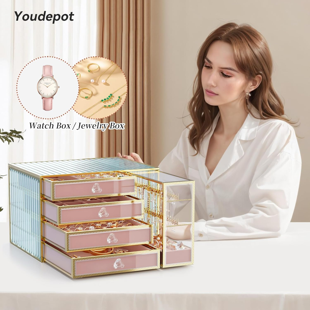Store New Arrivals Add to Favorite View Feedback Contact Jewelry Organizer Box-Tempered Glass 5-Drawer Jewelry Boxes for Women, Large Jewelry Boxes & Organizers with Velvet Necklaces Earring Organizer. Description Item model number YM-SS PINK Style Jewelry Box pink Number of Items 1 Closure Type drawer Country of Origin China Batteries Included? No Usage Jewelry Jewelry Storage Type Jewelry Box Batteries Required? No Number of Compartments 5 Target Audience Women Product Dimensions 6.7"D x 7.5"W x 10"H Material Tempered Glass Number of Drawers 5 Finish Type Polished Item Package Quantity 1 Item Weight 1 pounds Finish Polished Occasion Mother's Day, Christmas, New Home, Birthday, Valentine's Day Special Features Lined, Secret Compartment Special Feature Lined, Secret Compartment Part Number YM_SS Mounting Type Freestanding Color Pink Inner Material Velvet Shape Rectangular Recommended Uses For Product Jewelry Size 10*7.5*6.7 inches Number Of Pieces 1 glass Premium Quality Material: Crafted from high-quality double-layer plating tempered glass, our glass jewelry box is engineered to resist rust and fading, ensuring your precious items are well-preserved for years to come. This jewelry organizer is a testament to enduring beauty and protection. Optimal Size: At 10"L x 7.5"W x 6.7"H, this jewelry box for women features five expansive layers, offering ample space to organize and easily access your cherished jewelry pieces. It's a large jewelry organizer that meets diverse storage needs. Practical Design: Ideally suited for any spot, from bathroom counters to dressers, this versatile jewelry box for earrings, necklaces, and bracelets simplifies jewelry organization. Its user-friendly design ensures your favorite pieces are always within reach, making it a standout among jewelry boxes & organizers. Sealed Protection: Our jewelry organizer is meticulously lined with soft velvet and features a sealed construction, safeguarding your makeup and jewelry from dust and moisture. This design keeps the interior pristine, preventing scratches and damage, highlighting its role in jewelry organizers and storage. Luxury Gift: Elevate gift-giving with this exquisite glass jewelry box, perfect for celebrating significant moments such as Christmas, birthdays, Valentine's Day, and Mother's Day. It's a thoughtful present for those who appreciate elegant jewelry storage, distinguishing it from other jewelry boxes for women. Commitment to Excellence & Sustainability: We are dedicated not only to providing outstanding customer service but also to embracing eco-friendly initiatives. Our packaging and materials, chosen with the environment in mind, aim to minimize our carbon footprint while ensuring you receive a product that meets the highest standards of quality and sustainability. This approach reinforces our position as a provider of premium jewelry boxes & organizers. Product Description Large Jewelry Boxes & Organizers The video showcases the product in use. The video guides you through product setup. The video compares multiple products. The video shows the product being unpacked. 1 More Colors 2 Materials 3 Customer Reviews 4 More Styles Jewelry Box More Choices Youdepot Brand Name Youdepot Glass ,Velvet Material Glass ,Velvet 15 lb Weight 15 lb Jewelry Organizer Uses For Product Jewelry Organizer The Perfect Gift Space Saver Youdepot Brand Name Youdepot Glass ,Velvet Material Glass ,Velvet 15 lb Weight 15 lb Jewelry Organizer Uses For Product Jewelry Organizer The Perfect Gift Space Saver Youdepot Brand Name Youdepot Glass ,Velvet Material Tempered glass 15 lb Weight 11 lb Jewelry Organizer Uses For Product Makeup Organizer The Perfect Gift Space Saver Youdepot Brand Name Youdepot Glass ,Velvet Material Glass 15 lb Weight 16 lb Jewelry Organizer Uses For Product Makeup Organizer The Perfect Gift Space Saver Jewelry Organizer Jewelry Box for Women Makeup Organizer Makeup organizer ABOUT US We offer the best prices around on high quality products. Our E-store includes media such as books, movies, music and games while offering electronics, toys, sporting apparel, clothing, tools, general home, garden items and more. SHIPPING We are always working hard to ensure your package arrives as soon as possible. Please understand that some factors like weather, high postal traffic, and the performance of shipping companies are outside of our control. We offer free shipping to the lower 48 states and ship within 2 business days of payment, usually sooner. We do not accept P.O. Boxes. Please provide a physical address. For shipping outside of the continental USA, we only use eBay's Global Shipping Program.The item is shipped to KY and then sent to the rest of the world. International customers are responsible for all duties and taxes. Continue to check out in order to calculate costs for shipping the item to your country. Messages regarding eBay's Global Shipping Program MUST be directed at eBay EXCLUSIVELY. RETURNS We offer a 30-Day Return Policy on items which you are not completely satisfied with. You have the option for a full-refund or an exchange of the item. No returns are available on items shipped outside of the USA. PAYMENT We accept PayPal. CONTACT US This page content is yet to come Please ad us to your favorite seller and visit again later Thank You CUSTOMER SATISFACTION We try our very best to make sure every customer is completely satisfied. If there's a problem, message us! We're happy to help. WE ACCEPT Copyright © 2021 AutoDS. | All Rights Reserved