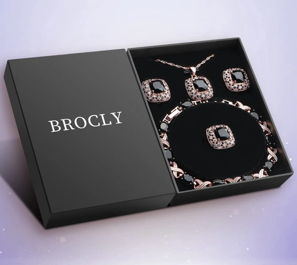 Jewelry Set for Women,Cubic Zirconia Tennis Necklace Ring Clips Earring Bracelet set,Wedding Birthday Anniversary Engagement Gift For Wife Girlfriend Best Friend Bridal Product Details Color: Rose Gold-Black Brand: BROCLY UPC: 751501758371 EAN: 0751501758371 MPN: Does not apply Department : womens Date First Available : March 8, 2023 Brand, Seller, or Collection Name: BROCLY Metal: platinum plated brass Material: Platinum, Rose Gold, Yellow Gold Gem Type: Cubic Zirconia Clasp: Lobster Clasp