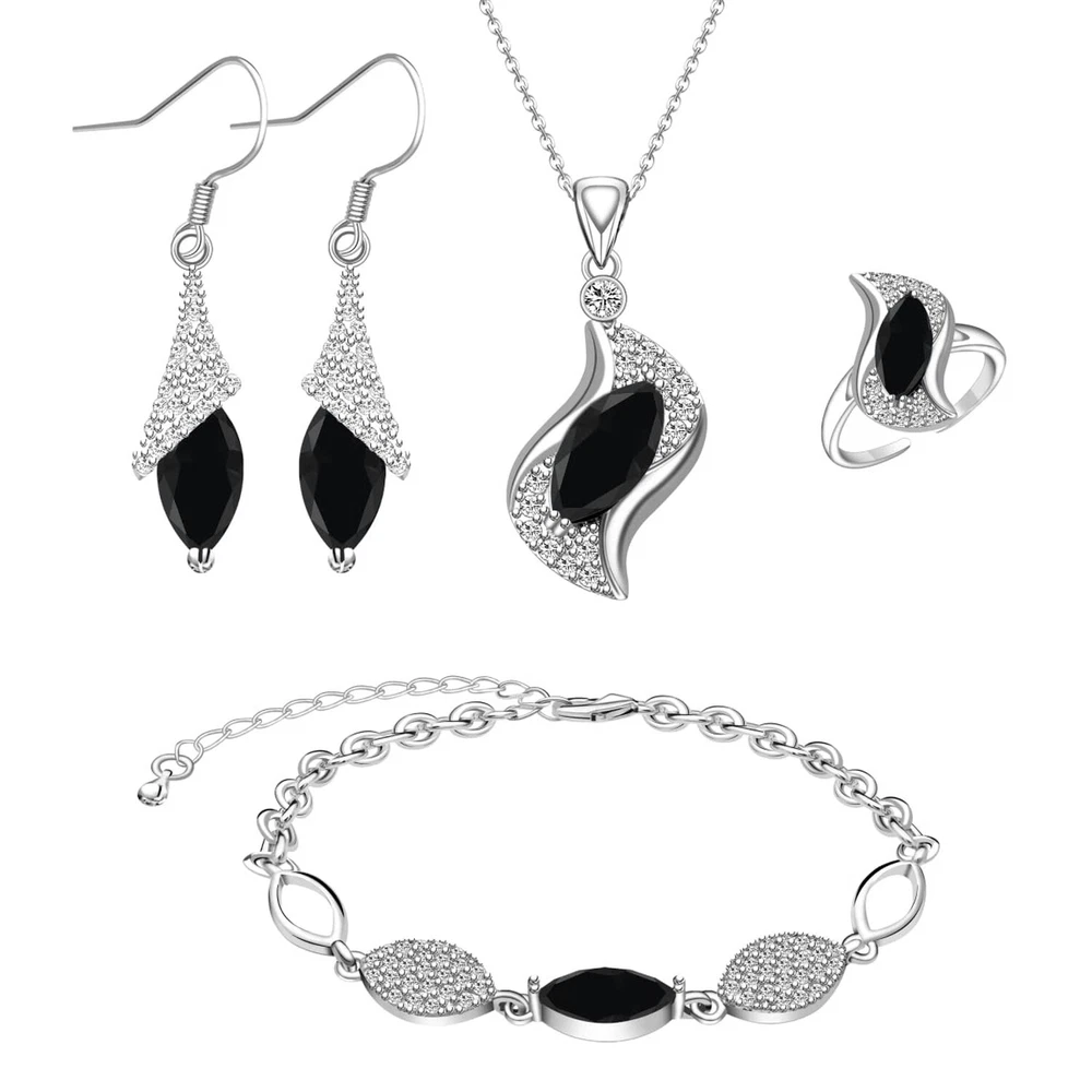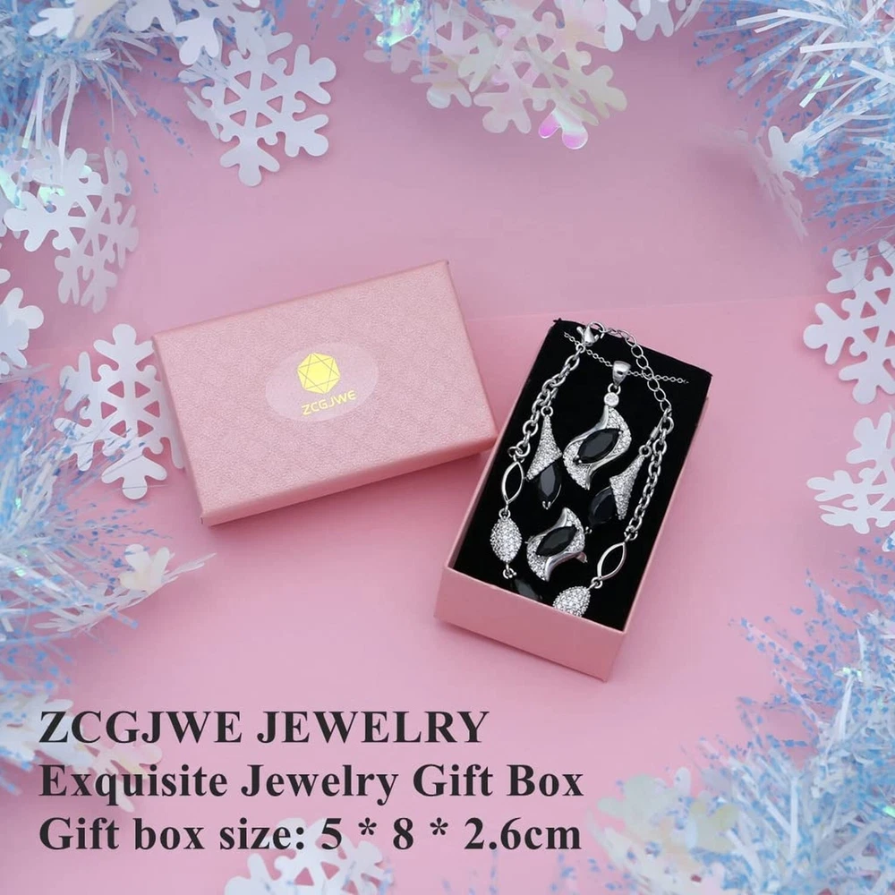 Jewelry Sets for Women Necklace Dangle Earrings Adjustable Ring Bracelet Costume Luxury Set for Women Girl Mom Wife Girlfriend Best Friend Ladies Bride bridesmaid Gift… Product Details Color: White Gold-Black Brand: ZCGJWE EAN: 9331739344686 MPN: Does not apply UPC: Does not apply Department : womens Date First Available : February 24, 2023 Brand, Seller, or Collection Name: ZCGJWE Metal: white gold plated brass Material: Copper Gem Type: Created Sapphire Setting: Prong Setting Clasp: Lobster Clasp Ring size: adjustable