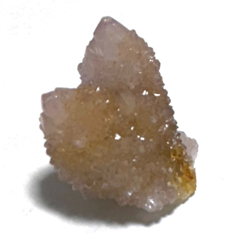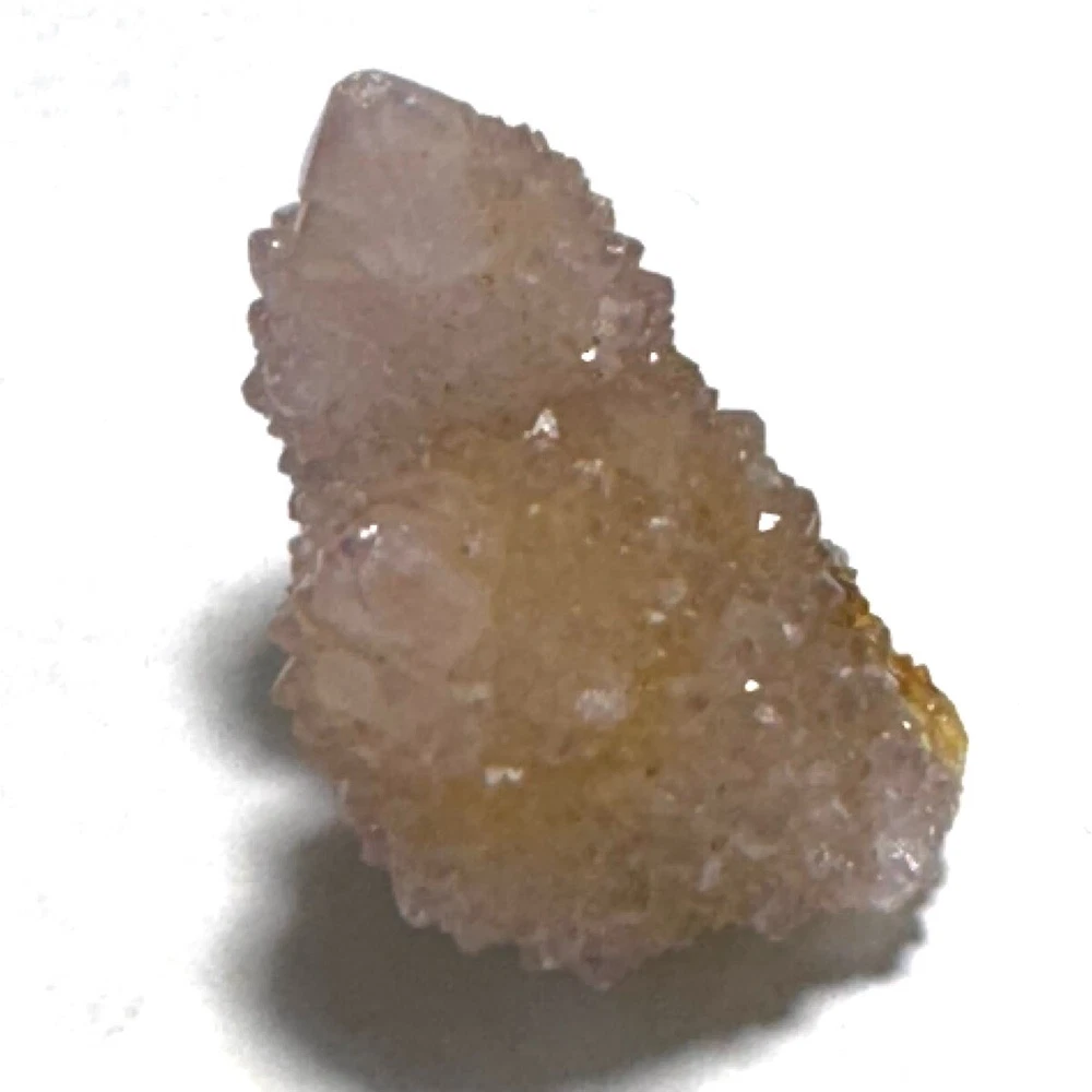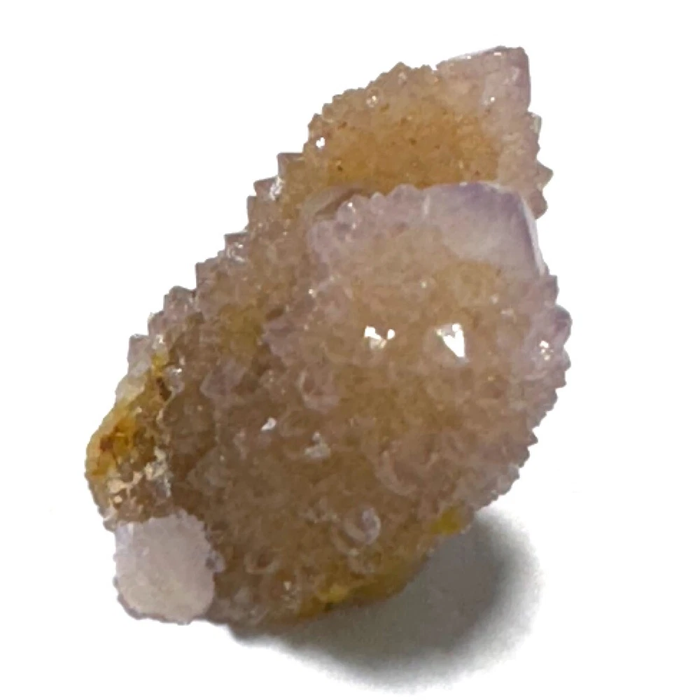 Cactus Quartz or Spirit Quartz Size Approximately 2 cm x 2.5 cm x 3 cm 16.7 g View My Other Items For Sale Visit My eBay Store Add me to your Favorite Sellers A cactus or spirit quartz is a quartz crystal that is encrusted by a second generation of smaller crystals grown on its prism faces. These crystals were first discovered in 1986 in the Magaliesberg Mountain Range near Pretoria, South Africa. It occurs as quartz, citrine and amethyst, and comes in a wide range of colors, including purple amethyst, violet amethyst, smoky, milky clear and golden citrine. FAQ/Tips Crystals are priced by quality, color and size. Purple amethyst is more highly prized and will cost more for a smaller lesser quality crystal. Lavender is the most common color and where you will find the best quality/value for price Crystals change colors with changes in type angle and intensity of light. Color may also vary between monitors. Pictures were taken in bright natural light. We do our best to give you many views so you can judge the quality of the given crystals. If you have questions please ask before bidding or buying. Many of the crystals have special color properties: Many have phantoms, not just the ones we?ve indicated. Some have ?floating? purple tips. The placement of darker purple against purple or white crystals appears to change as the crystal is turned. Many are a mixture of citrine and amethyst. The ones called ?Golden Healers? or ?Sunshine? have a rainbow effect on crystal faces. We value your feedback please contact us with problems. Items are returnable. Track Page Views With Auctiva's FREE Counter