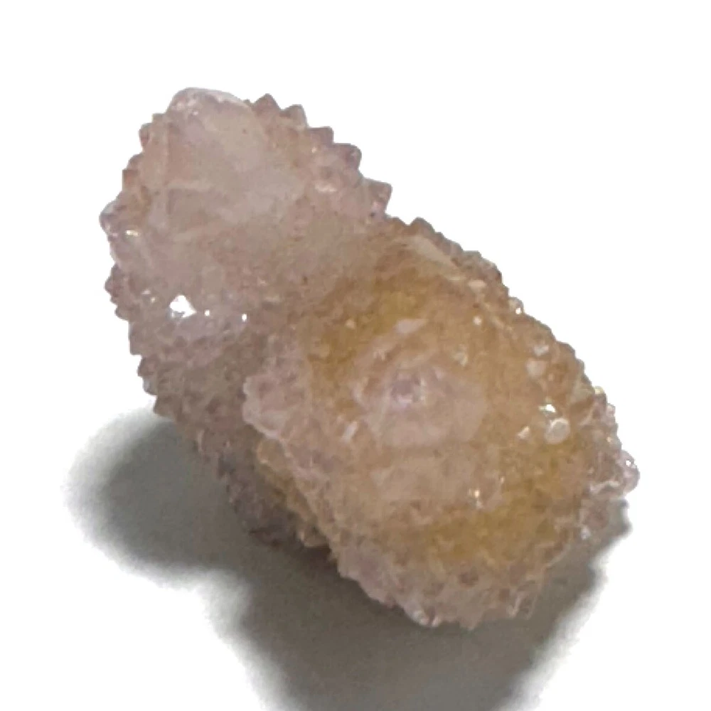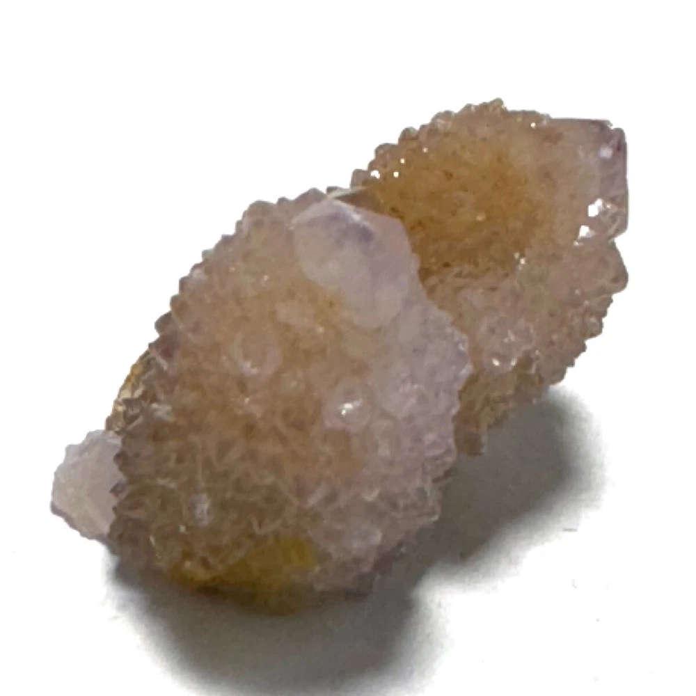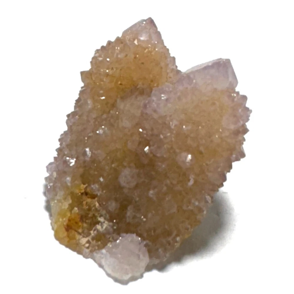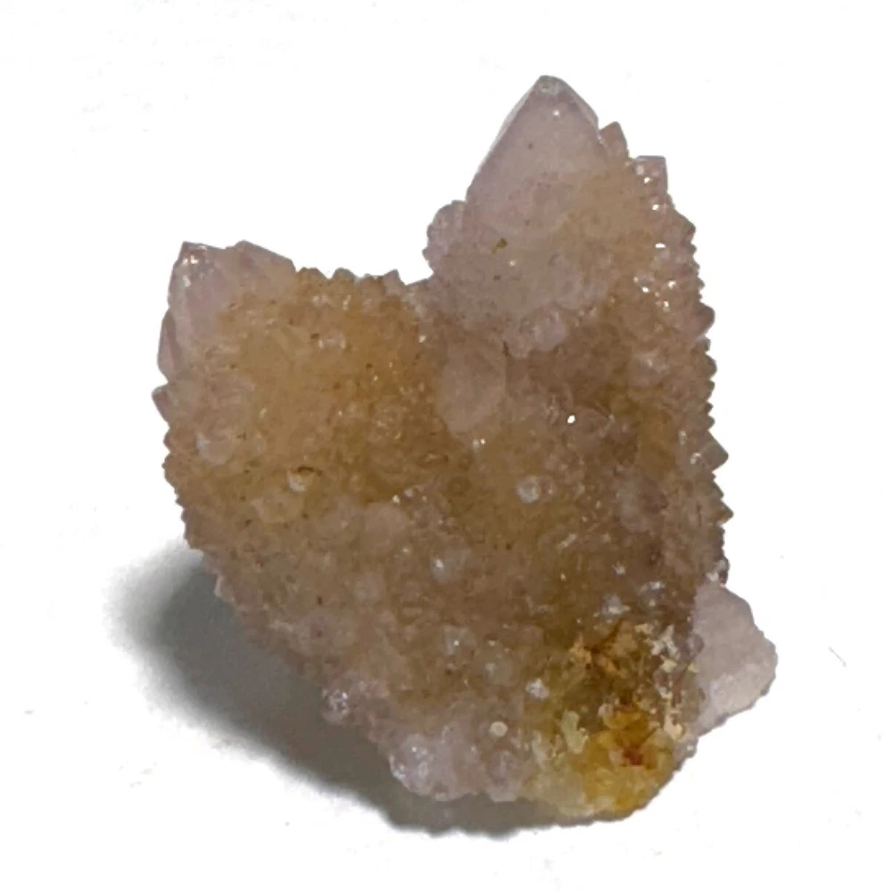 Cactus Quartz or Spirit Quartz Size Approximately 2 cm x 2.5 cm x 3 cm 16.7 g View My Other Items For Sale Visit My eBay Store Add me to your Favorite Sellers A cactus or spirit quartz is a quartz crystal that is encrusted by a second generation of smaller crystals grown on its prism faces. These crystals were first discovered in 1986 in the Magaliesberg Mountain Range near Pretoria, South Africa. It occurs as quartz, citrine and amethyst, and comes in a wide range of colors, including purple amethyst, violet amethyst, smoky, milky clear and golden citrine. FAQ/Tips Crystals are priced by quality, color and size. Purple amethyst is more highly prized and will cost more for a smaller lesser quality crystal. Lavender is the most common color and where you will find the best quality/value for price Crystals change colors with changes in type angle and intensity of light. Color may also vary between monitors. Pictures were taken in bright natural light. We do our best to give you many views so you can judge the quality of the given crystals. If you have questions please ask before bidding or buying. Many of the crystals have special color properties: Many have phantoms, not just the ones we?ve indicated. Some have ?floating? purple tips. The placement of darker purple against purple or white crystals appears to change as the crystal is turned. Many are a mixture of citrine and amethyst. The ones called ?Golden Healers? or ?Sunshine? have a rainbow effect on crystal faces. We value your feedback please contact us with problems. Items are returnable. Track Page Views With Auctiva's FREE Counter