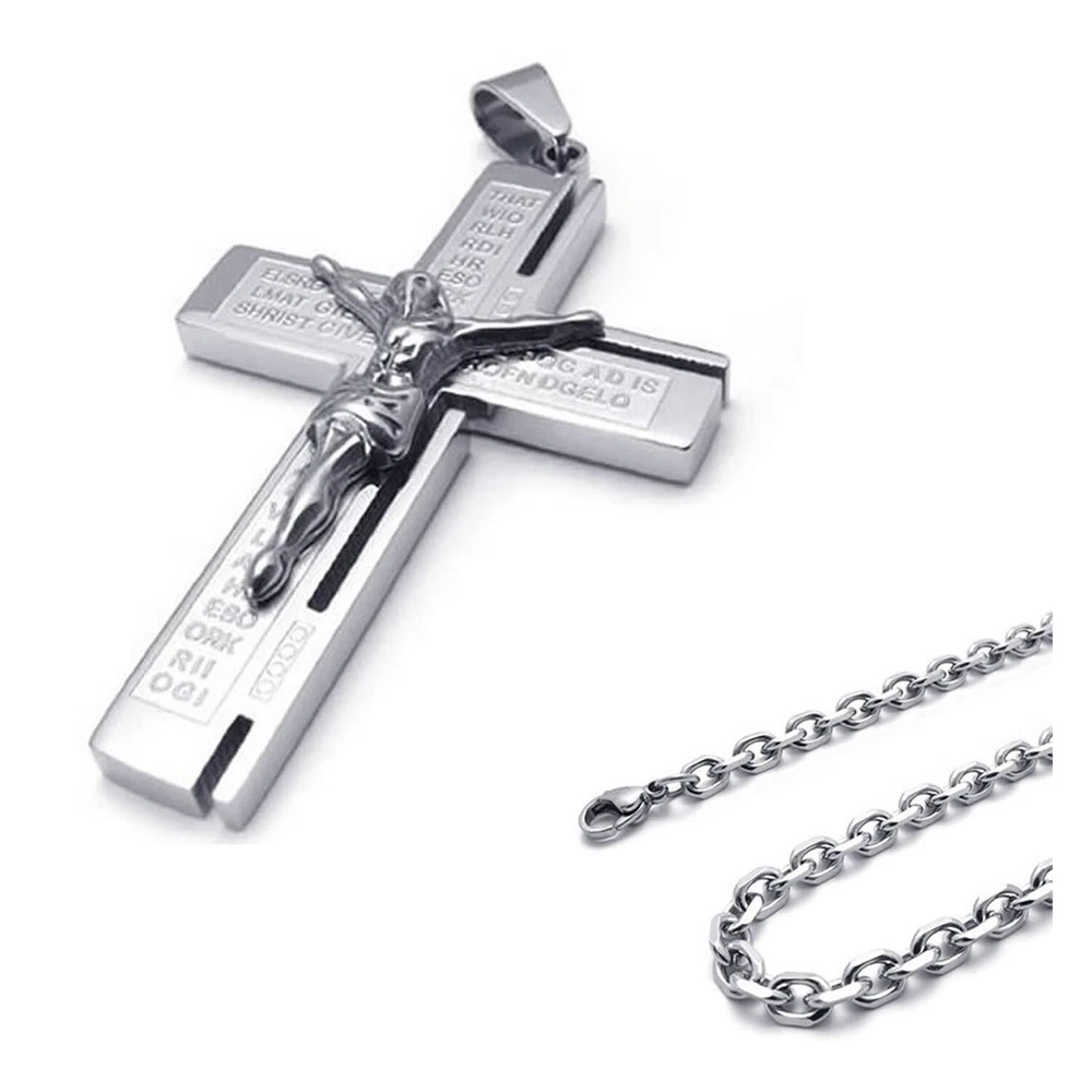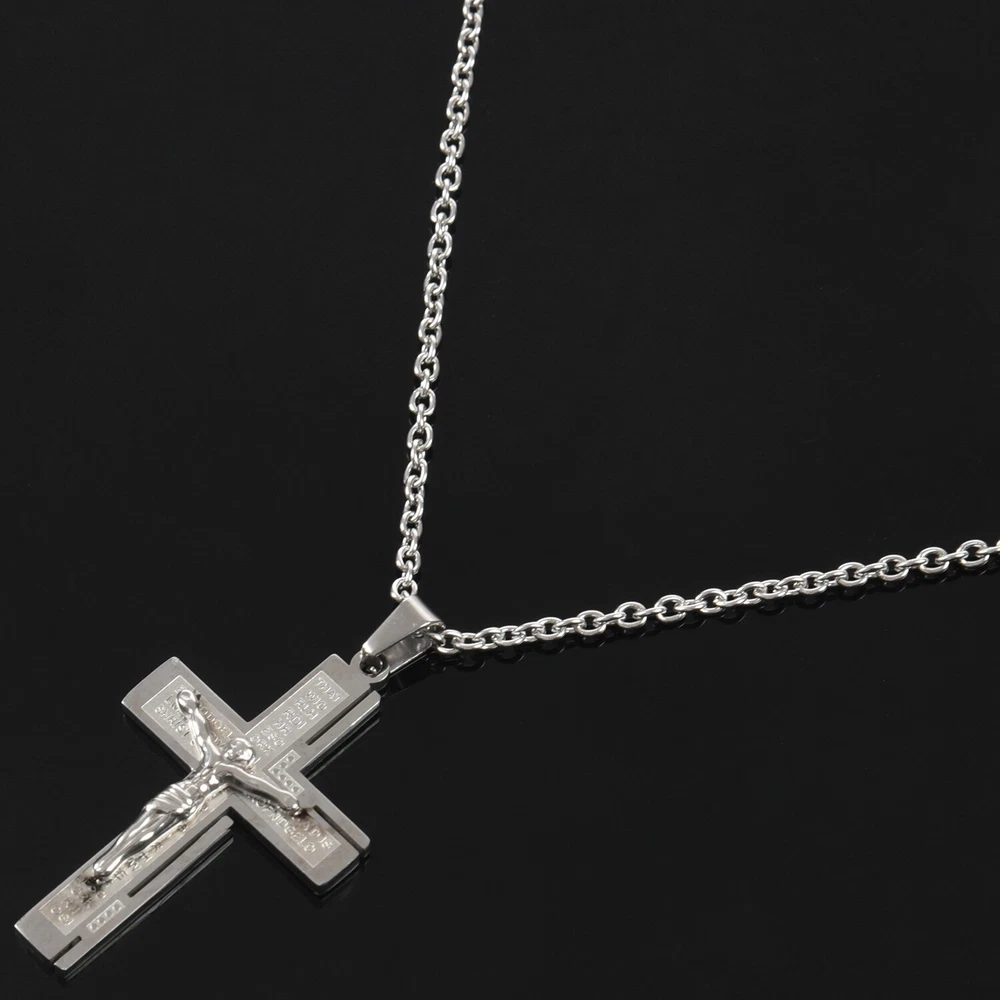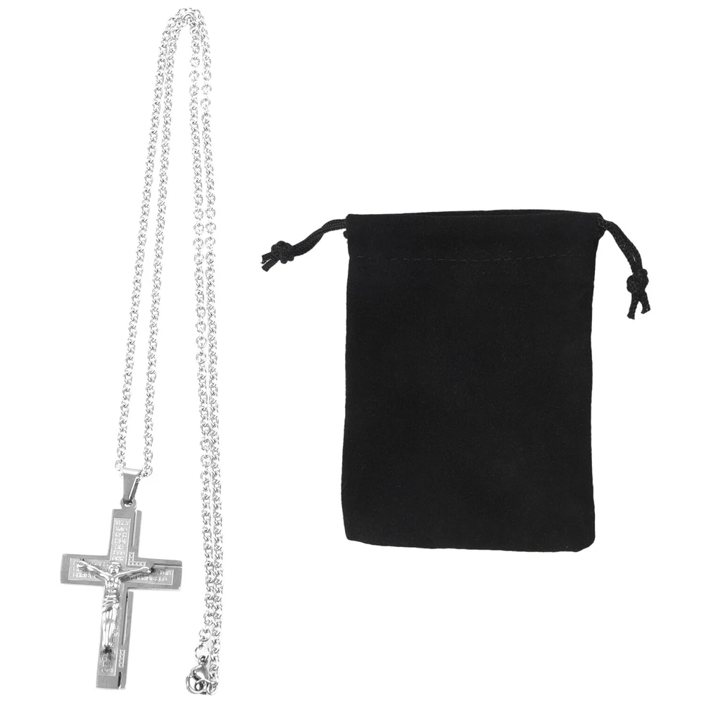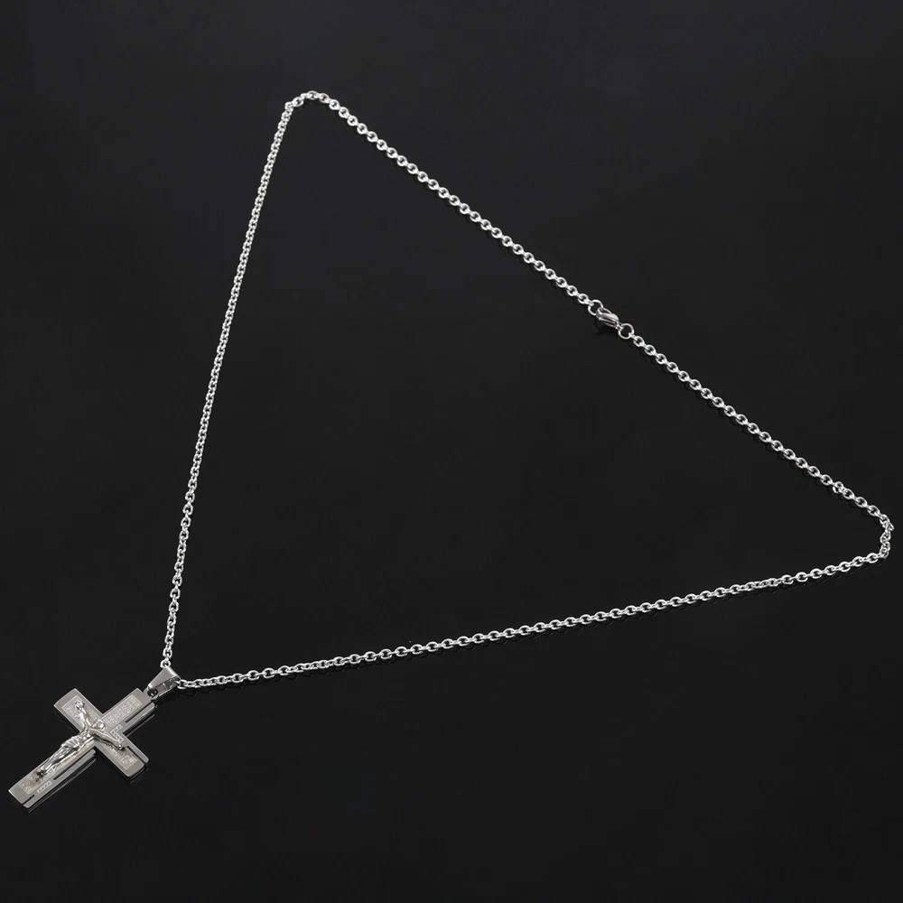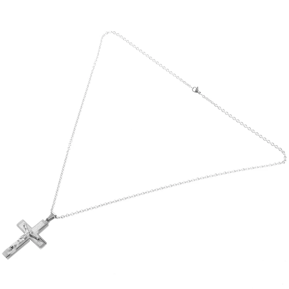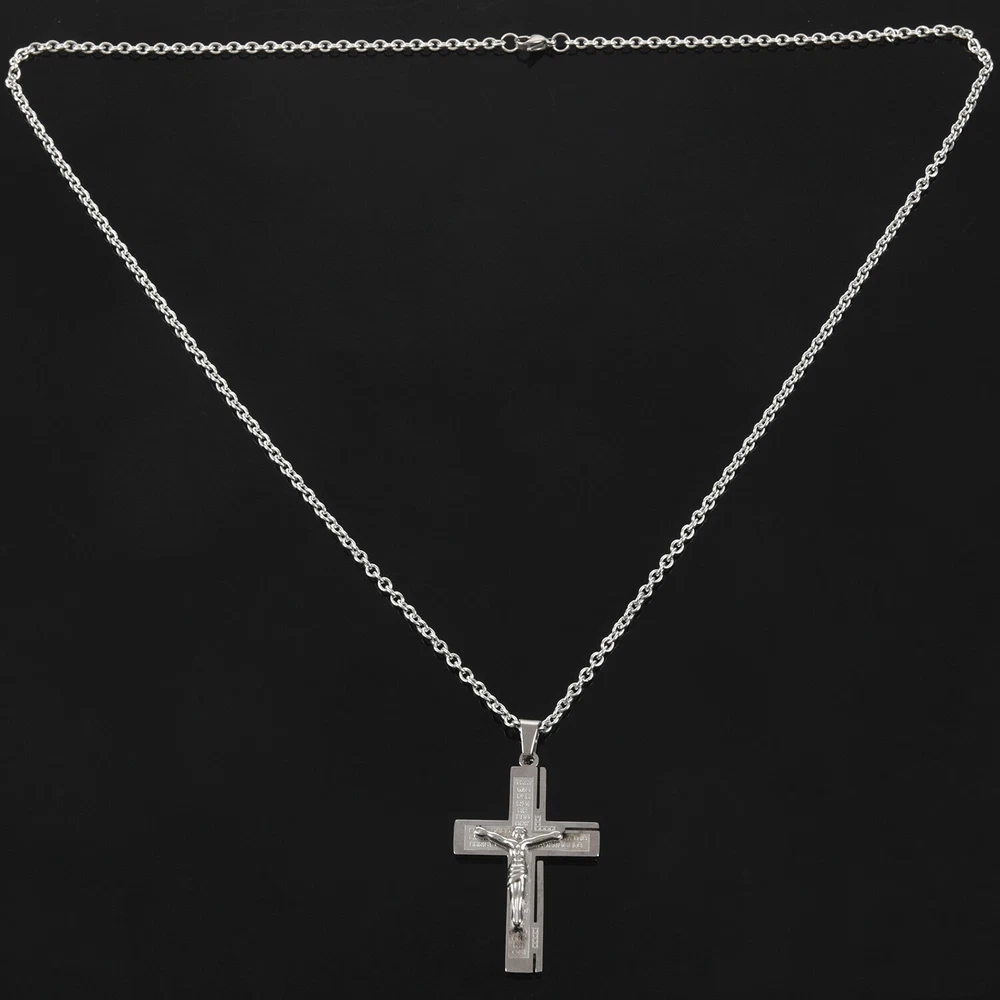 Jewelry Stainless Steel Jesus Crucifix Bible Prayer Pendant with 70cm8010 {LIS_PIC} Material (trailer and chain): Stainless steel Necklace size: 5.2cm (height), 3.2cm (width) Chain size: 70cm (length), 0.3cm (width) Color: Silve Package Contents: 1 x necklace 1 x flannel pocket Only the above Package contents, other products are not included. Note: Light reflection and different displays may cause the color of the item in the picture a little different from the real thing. The allowable measurement error is +/- 1-3 cm.