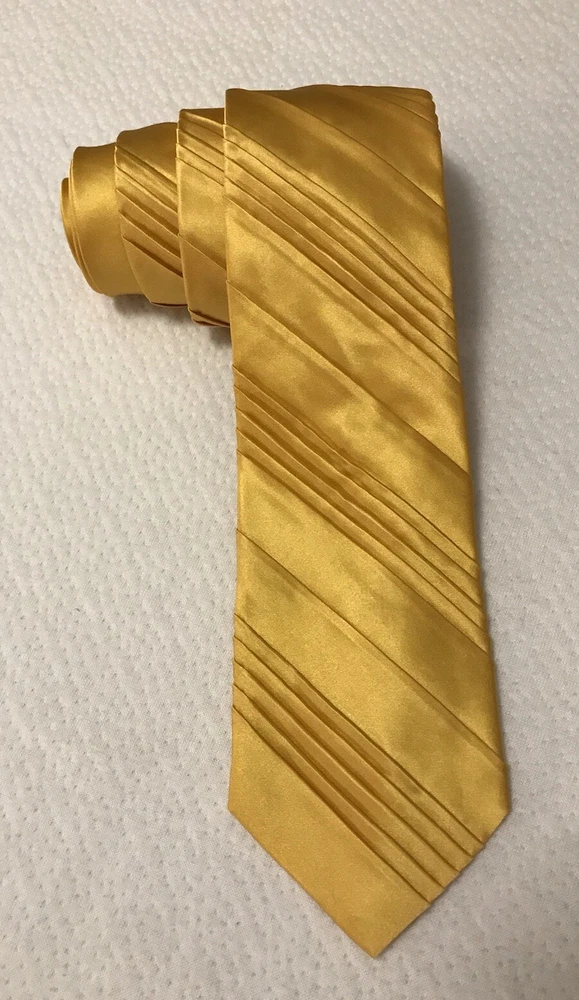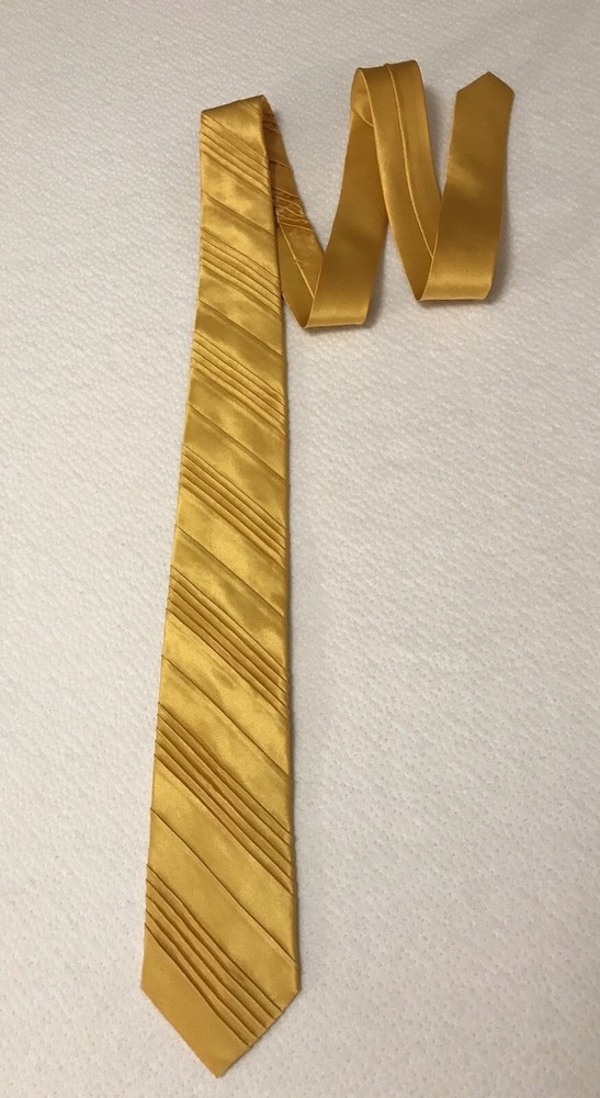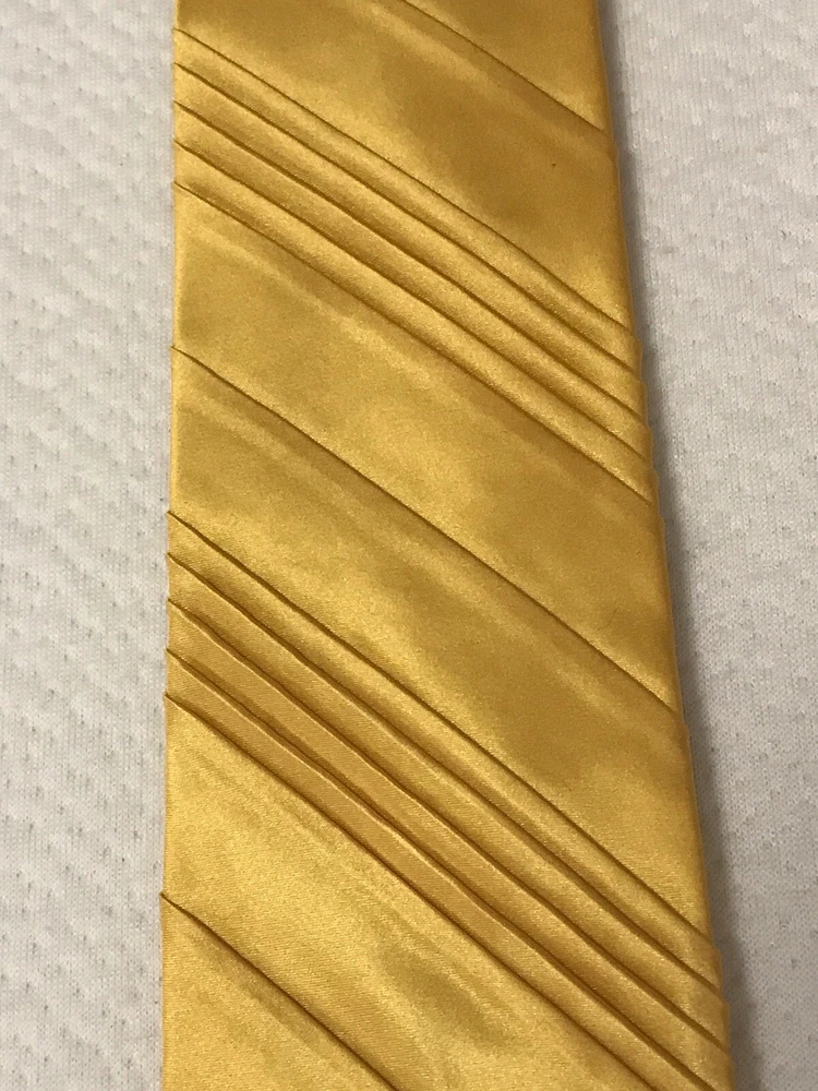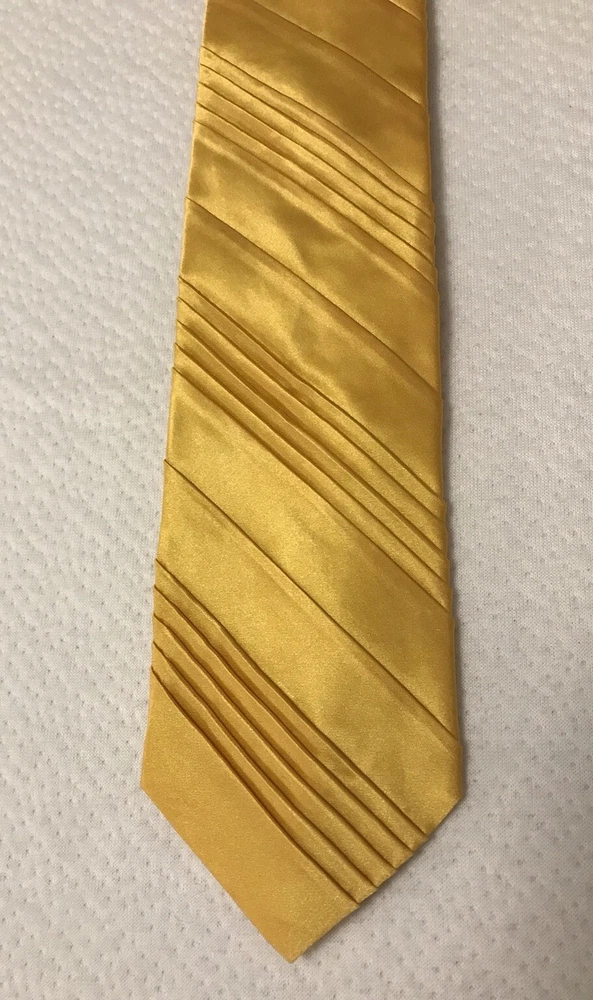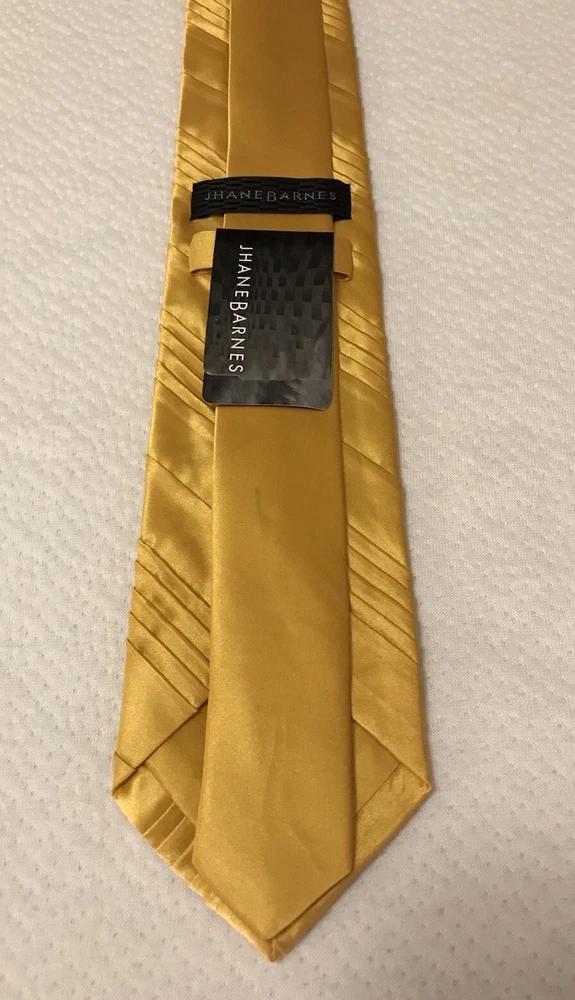 This Jhane Barnes Silk Satin Look Neck Tie in Gold is a stylish and elegant accessory for formal occasions. Made from luxurious silk with a pleated design, this designer tie adds a touch of sophistication to any outfit. The gold color and classic width make it suitable for a variety of events, from weddings to Easter celebrations. With adjustable sizing and a length of 56 inches, this tie is a perfect choice for those looking to elevate their formal look with a pop of color and a touch of preppy style. In a smoke free home.