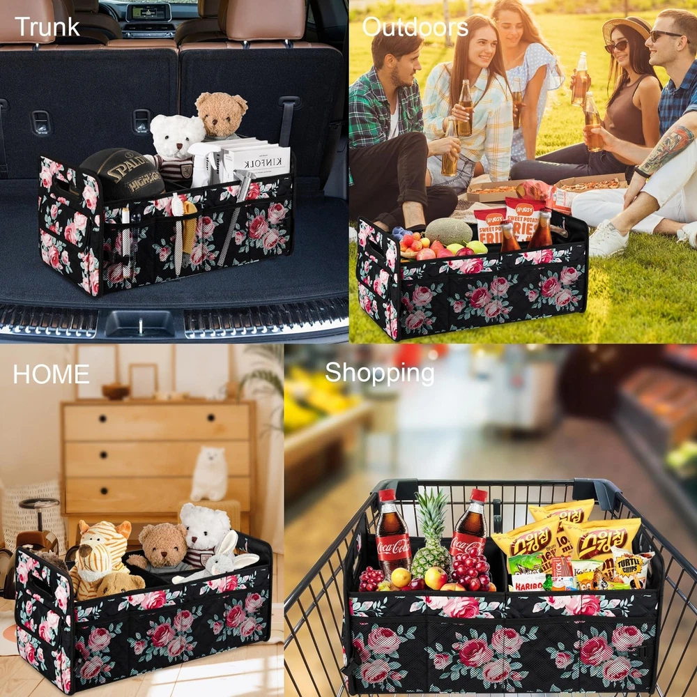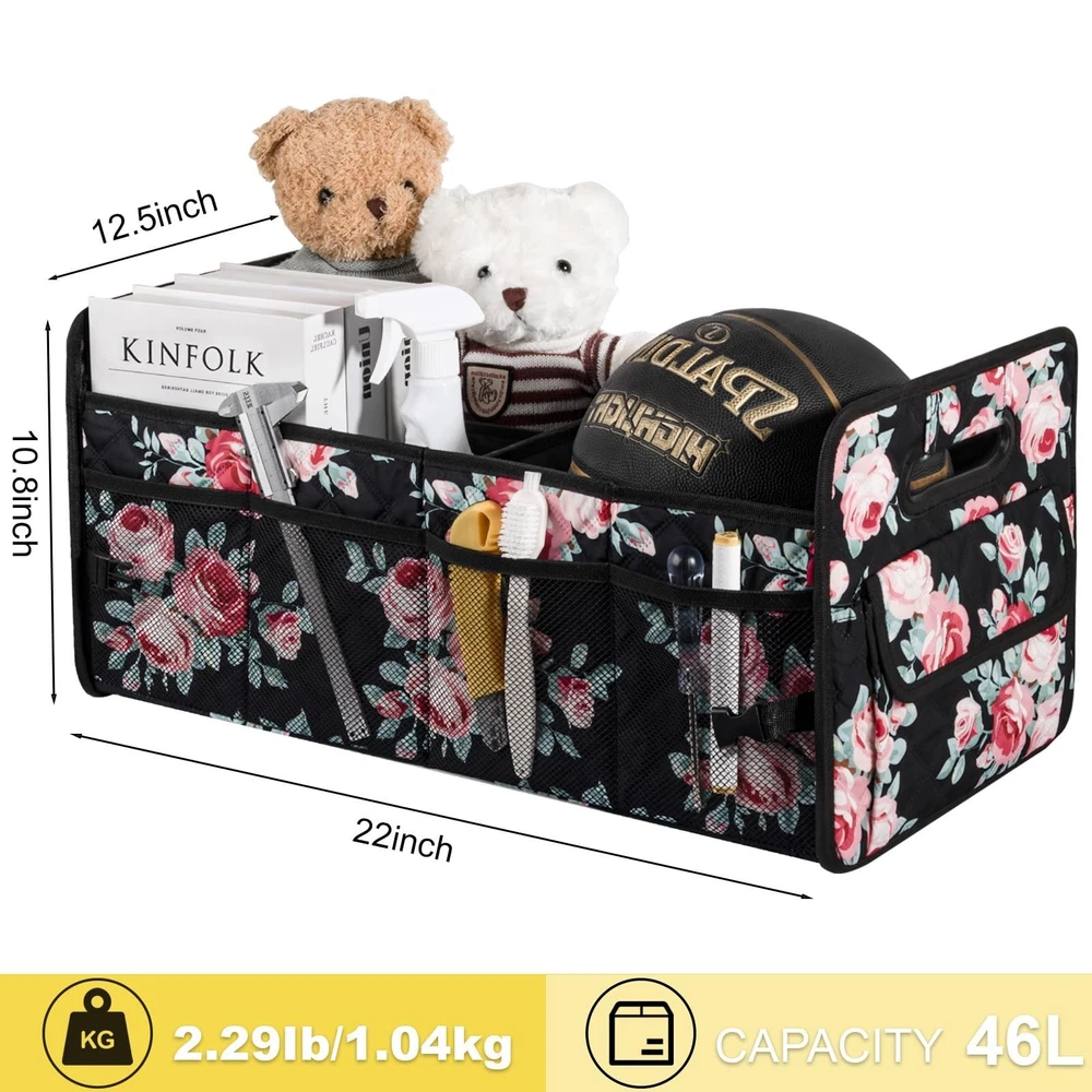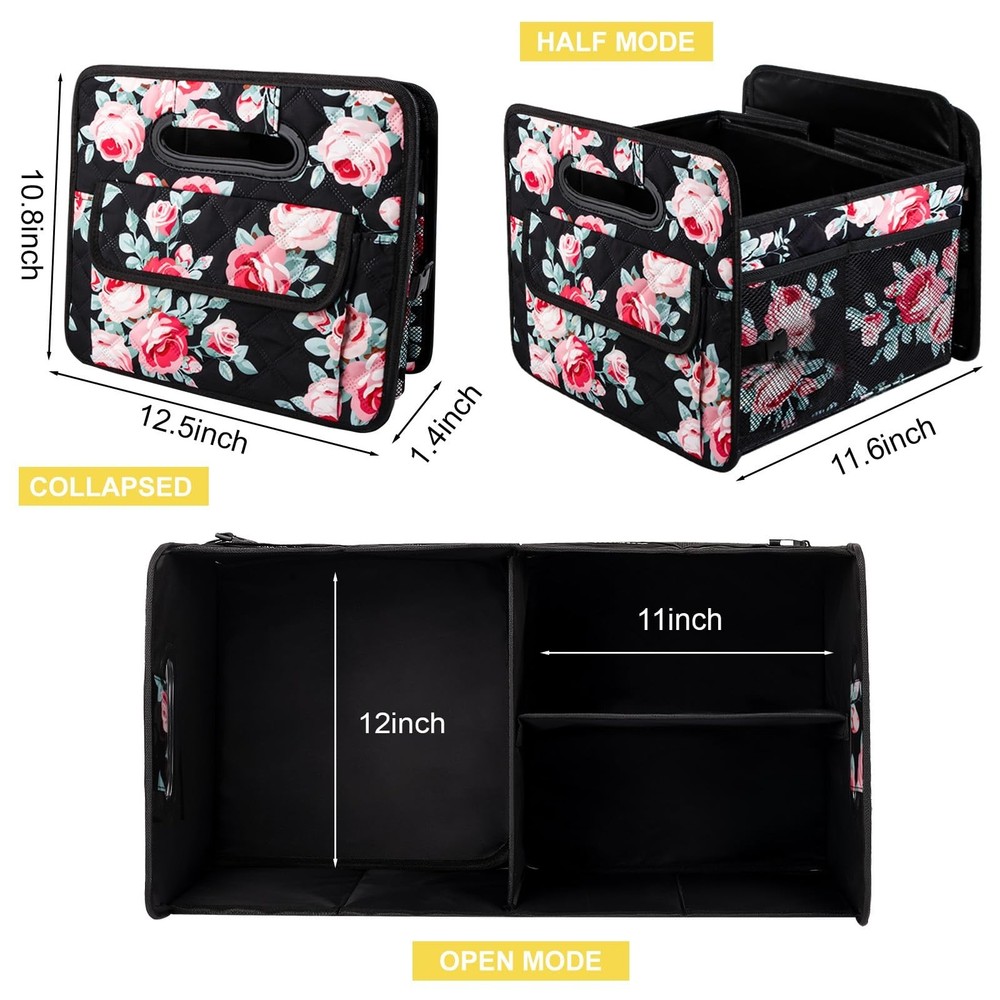 JiatuA Car Trunk Organizers and Storage for SUV, Collapsible Multi Compartment Container Box Adjustable Car Accessories for Women Men, Black Floral Product Details Size: Standard Color: Black Floral Brand: JiatuA MPN: Does not apply UPC: Does not apply EAN: Does not apply Specific Uses For Product: Automobiles, Cleaning Supplies, Home, Supermarket Shopping, Outdoor Material: Polyester, Plastic Special Feature: Portable, Foldable, Adjustable Color: Black Floral Brand: JiatuA Finish Type: Lacquered Product Dimensions: 13.7"D x 11.6"W x 1.8"H Shape: Rectangular Specific Uses For Product: ‎Automobiles, Cleaning Supplies, Home, Supermarket Shopping, Outdoor Material: ‎Polyester, Plastic Special Feature: ‎Portable, Foldable, Adjustable Color: ‎Black Floral Brand: ‎JiatuA Finish Type: ‎Lacquered Product Dimensions: ‎13.7"D x 11.6"W x 1.8"H Shape: ‎Rectangular Item Weight: ‎2.44 pounds Special Features: ‎Portable, Foldable, Adjustable Date First Available: March 5, 2025 Durability: made of sturdy, resistant 600D Oxford polyester, that can withstand the rigors of daily use, also is waterproof and easy to clean. The side and base is both reinforced with sturdy panels that prevent sagging, even when the compartments are filled with heavier items. Features: measures 22" L x 12.5" W x 10.8" H, features multiple compartments of varying sizes, which is ideal for sorting and storing different types of items. Large capacity space can meet your daily life needs of organizing and storing various items, easy to access. Adjustable: with adjustable dividers, you can customize the space for different trips and uses. This flexibility is particularly useful when transporting items of different shapes and sizes, ensuring that everything stays in place during transit. FOLDABLE: the organizer can be easily folded down to a compact size, making it convenient to store without taking up much space. Perfect fit for those who with limited trunk space or those who only need the organizer occasionally. Multifunctional: fits perfect in the back, suitable for any car, such as suv, cargo, sedan, truck, jeep, minivan, van etc. Help you keep cleaning essentials, tools, car supplies neatly arranged in one place, maintaining clean car interior, never roll around everywhere.