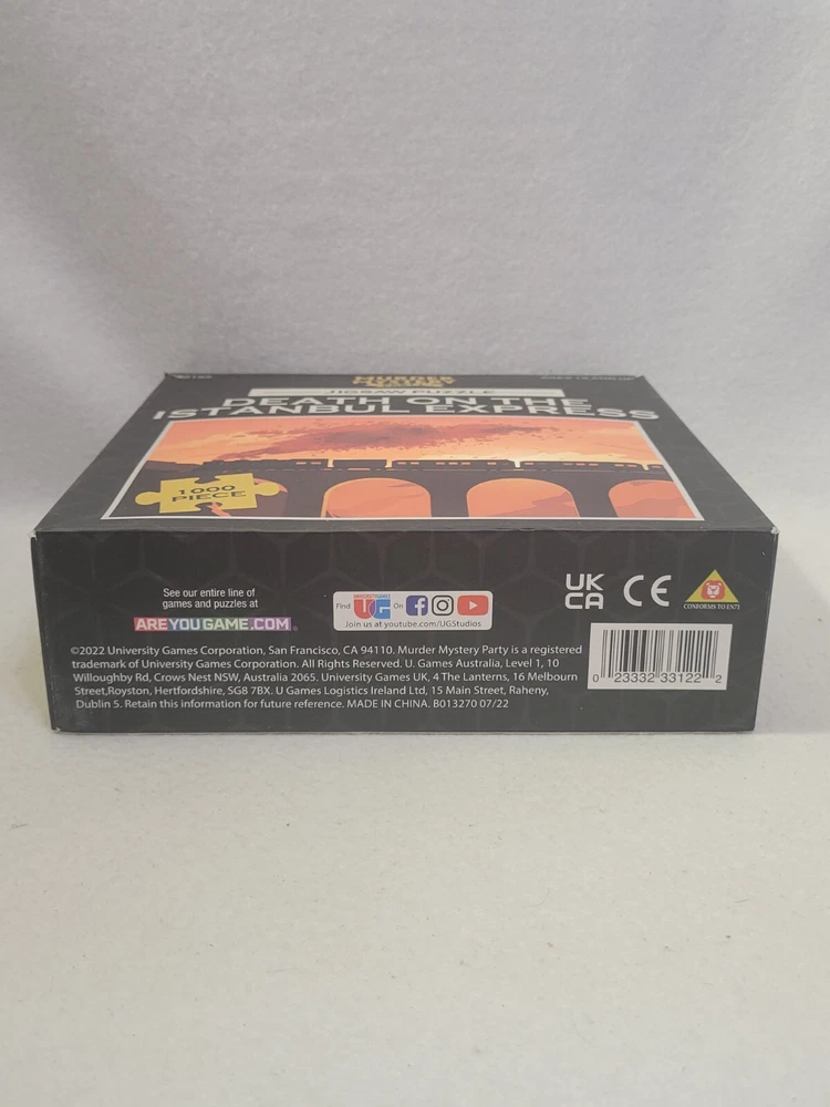 Get ready for a thrilling game night with this 1000-piece jigsaw puzzle! Featuring an intriguing murder mystery theme set on the Istanbul Express, this puzzle is sure to keep you and your friends engaged for hours, as it comes with a mystery clue booklet that should be read before attempting to put the puzzle together. The interlocking pieces ensure a seamless fit, while the vibrant multi-color design adds to the excitement. Made of high-quality cardboard material, this puzzle is perfect for puzzle enthusiasts of all ages. It comes from the trusted brand, University Games. Suitable for players aged 12 and up, this puzzle is a great addition to any game night. Doing puzzles has some hidden benefits . Excellent qualities : Cultivate concentration, patience, and temper your will Movement development : Train hand-eye coordination and precise small movements Spatial intelligence : Improve visual discrimination of colors and shapes Critical thinking ability : Understand the relationship between parts and the whole, and draw inferences from one example to explore the future Relaxes your mind : Relieve work pressure and release yourself Brain development : Enhance memory and may help prevent or slow brain degeneration * We did not work the puzzle or count the pieces, but we verify the number count at your request. Each item we ship is carefully packaged to prevent any damage and is shipped immediately with tracking.