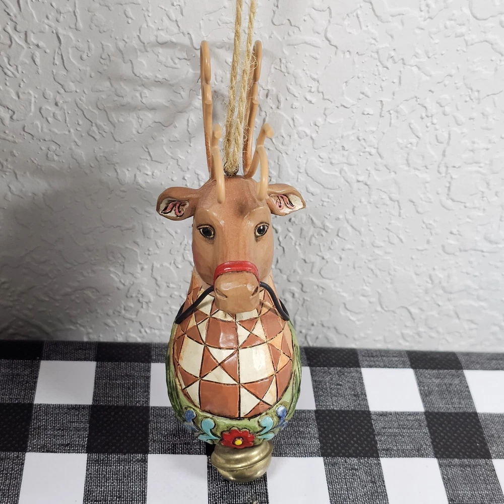 Department: Adult Character: Reindeer Occasion: Christmas Number of Items: 1 Features: Hanging, Decorative, Bell Pattern: Abstract Product Line: Heartwood Creek Type: Ornament Style: Folk Art Brand: Jim Shore Shape: Reindeer Item Height: 5.5 in Production Technique: na Color: Multicolor Year Manufactured: 2010 Set Includes: Ornament Theme: Animals Material: Stone, Resin Antique: No Subject: Reindeer Franchise: Jim Shore MPN: na Original/Licensed Reproduction: Original Size: Medium Collection: Heartwood Creek Vintage: Yes Recipient: Anyone