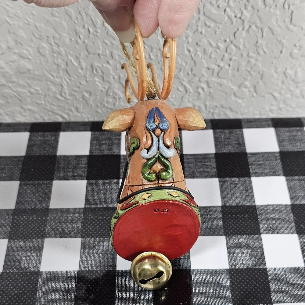 Jim Shore Reindeer w/ Dangle Bell Holiday Hanging Christmas Ornament Enesco 2010