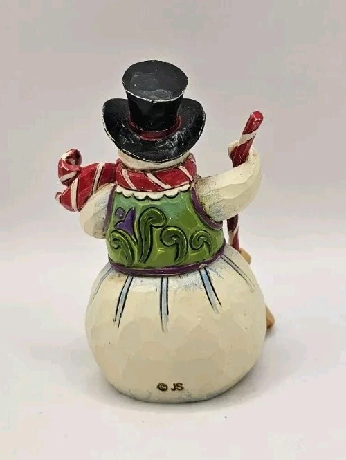 Jim Shore Small Snowman Holding Broom Figure. No cracks or breaks. Some tiny paint chips. 3.5" tall