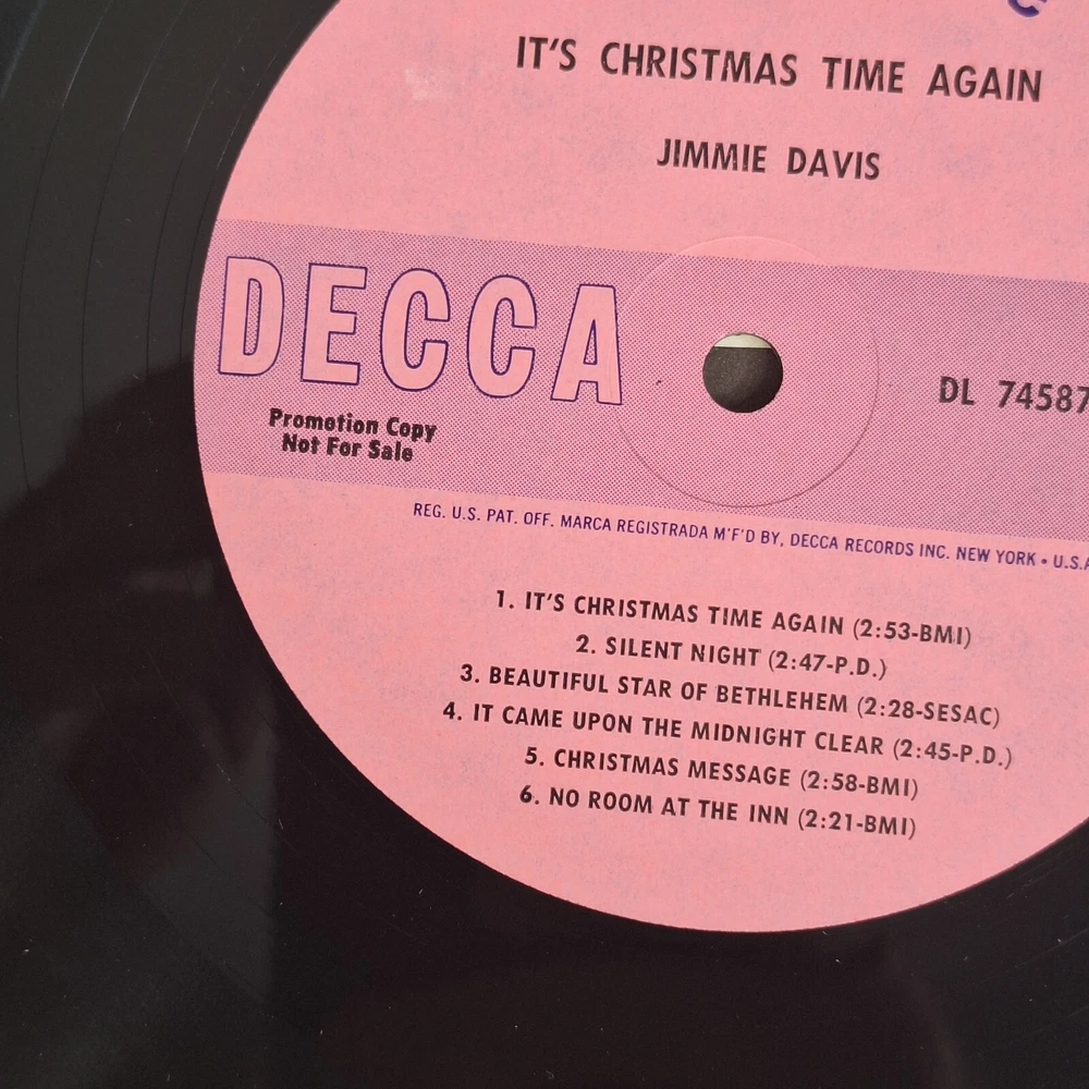 HomeJimmie Davis It's Christmas Time Again LP Vinyl Decca 1964