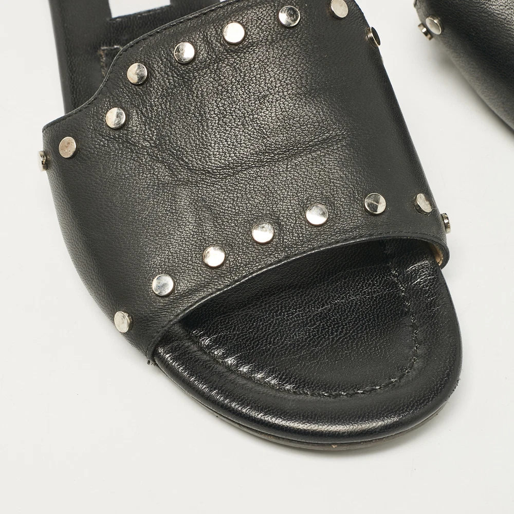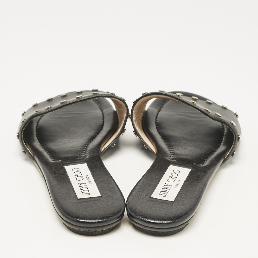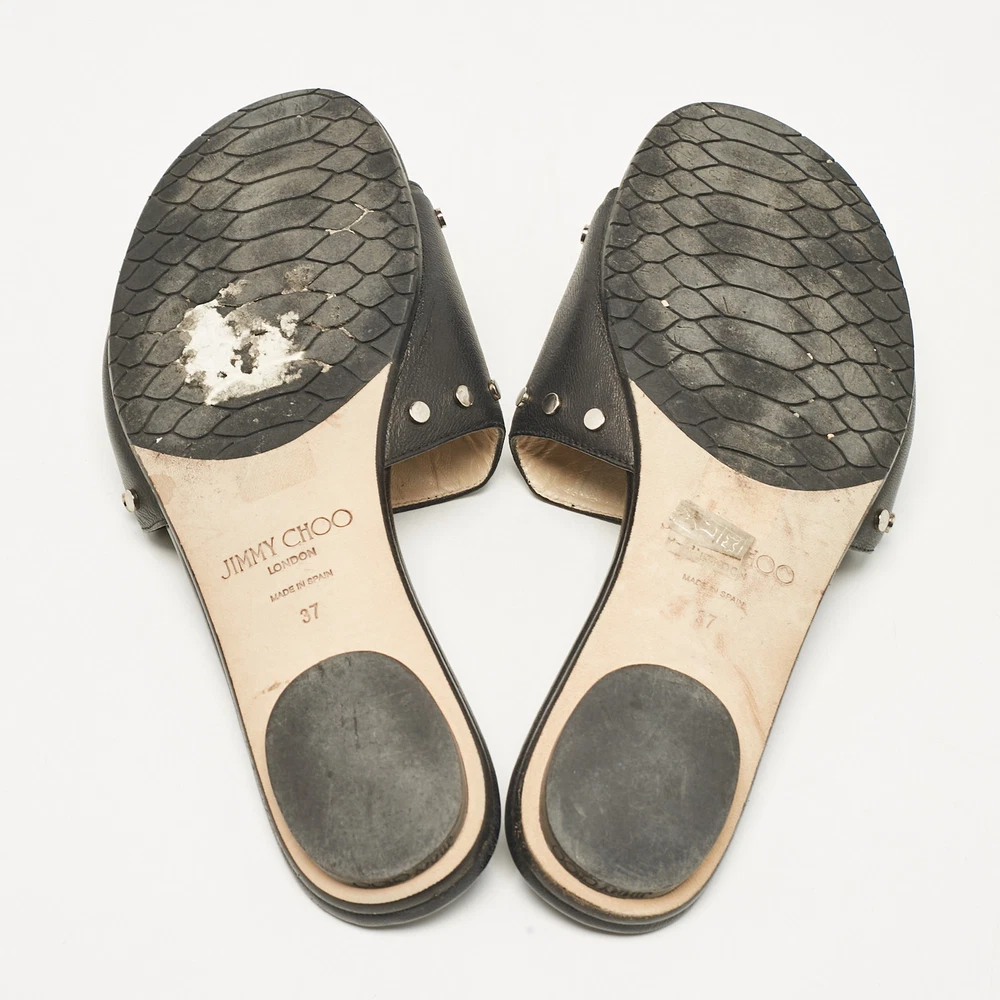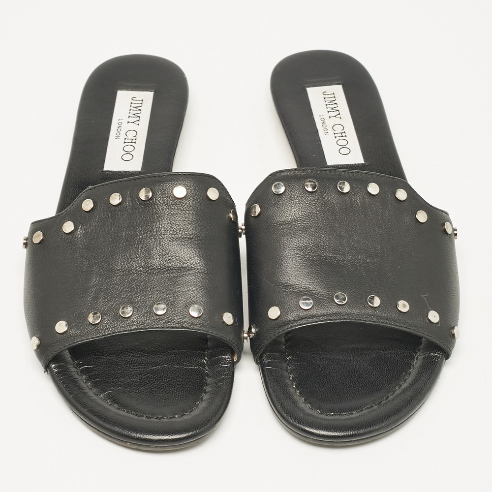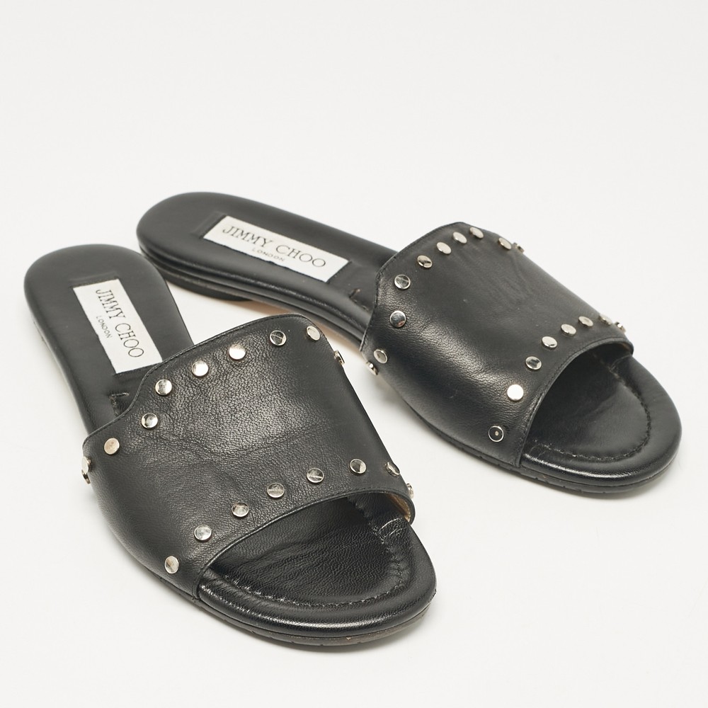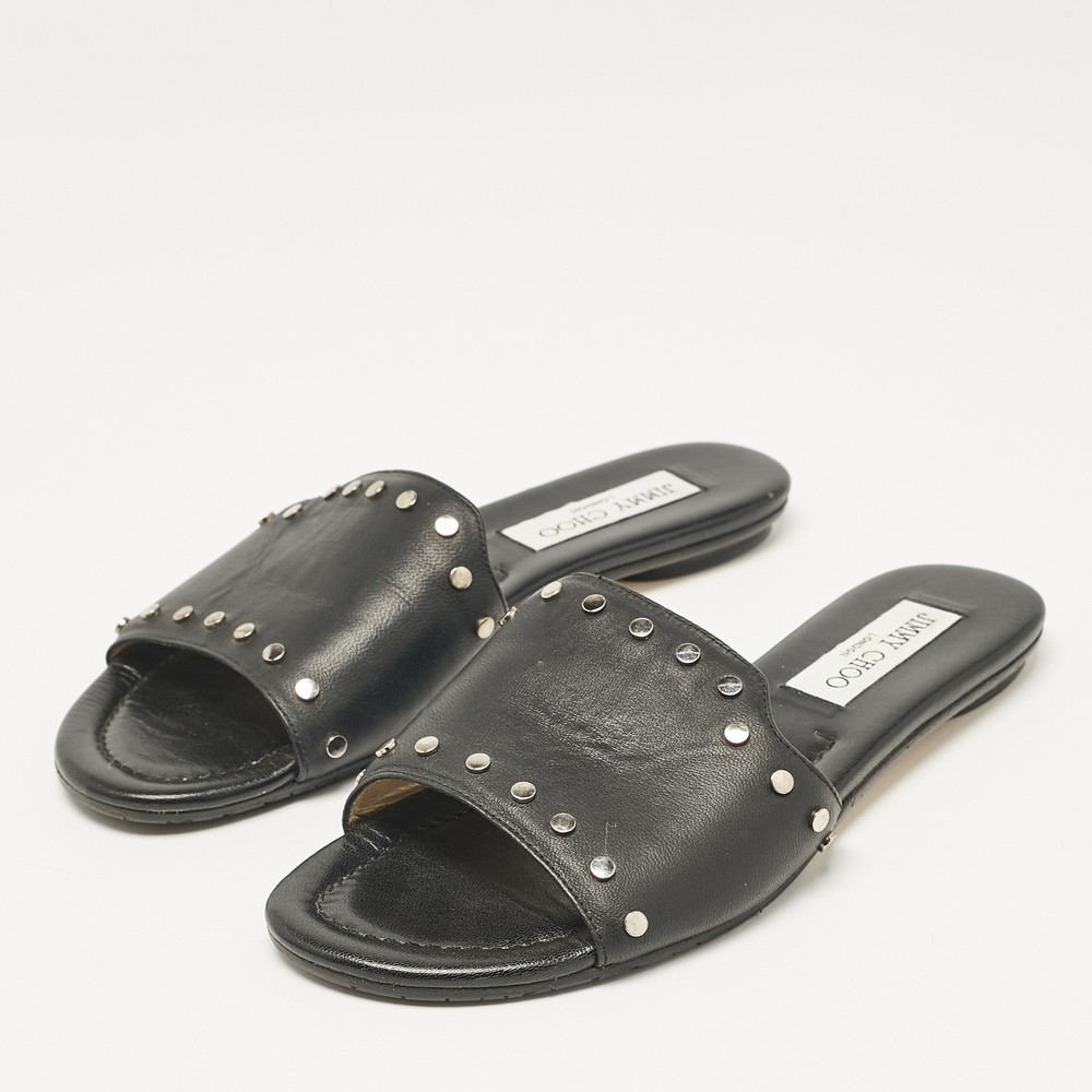 Wear these slides on days when you cannot choose between fashion and comfort, for they bring both. They are made from Jimmy Choo, made from leather, and embellished with studs.Certified by The Luxury Closet - This item has gone through a detailed authentication process overseen by our experts. We offer a lifetime guarantee of authenticity on all our items. Import duties, taxes and charges are not included in the item price. These charges are the buyers responsibility. Please check with your country’s customs office to determine what these additional cost will be prior to buying. Our eBay Store About Us Contact Us Add to Favorite Sellers Jimmy Choo Black Leather Studded Nanda Flat Slides Size 37 $163.9 Wear these slides on days when you cannot choose between fashion and comfort, for they bring both. They are made from Jimmy Choo, made from leather, and embellished with studs. Product Details Brand Color Black Dimensions Material Leather Size 37 Outsole Width 9.5 cm Outsole Length 24.5 cm Heel Height Includes The Luxury Closet Packaging Certified by The Luxury Closet This item has gone through a detailed authentication process overseen by our experts. We offer a lifetime guarantee of authenticity on all our items. How We Check The in-house team of experts at The Luxury Closet is highly trained to verify the authenticity and the condition of the luxury products. They ensure that only 100% authentic items are put on sale.The evaluation process is unique with its own mix of assessment criteria and differs according to the category. Each item is evaluated based on the following combination of hallmarks, hardware, stitching, symmetry, material, craftsmanship, stamping, codes, hologram stickers, and packaging. Our authenticators also check if the items have been modified or amended (e.g., aftermarket diamonds, replaced batteries, repaired bags, etc.) International Buyers Import duties, taxes and charges are not included in the item price. These charges are the buyers responsibility. Please check with your country’s customs office to determine what these additional cost will be prior to buying.