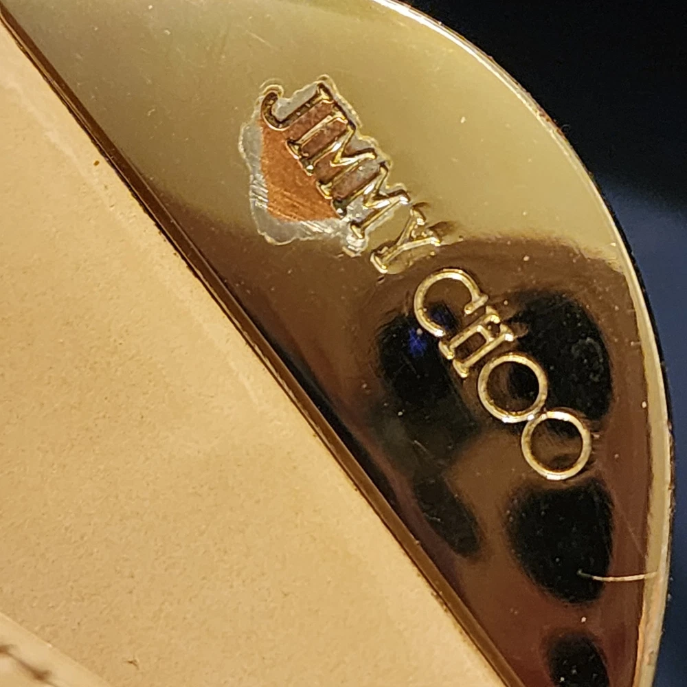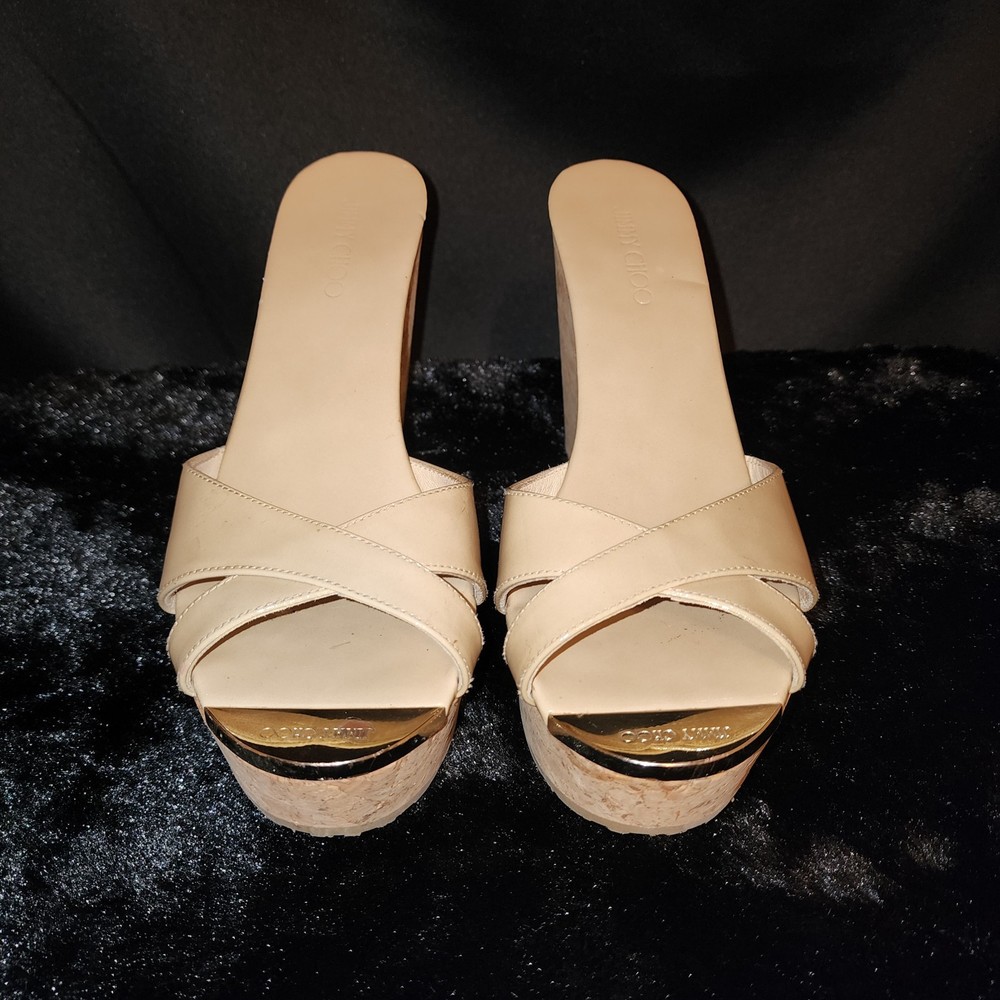 Upper Material:Patent LeatherType:HeelBrand:Jimmy ChooHeel Style:WedgeUS Shoe Size:7Department:WomenSeller Notes:“Condition is great please see picture for small discoloration on the toe plate.”Color:NudeStyle:wedge