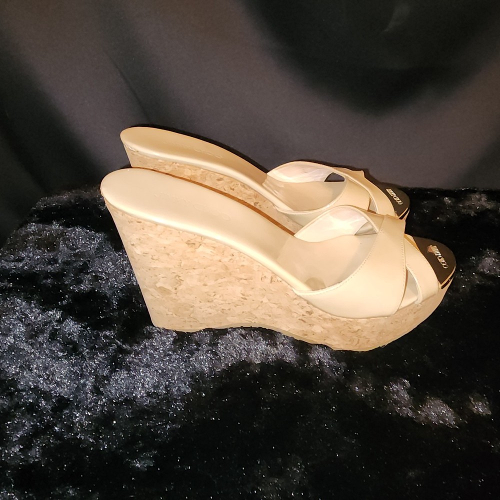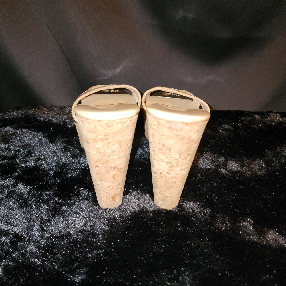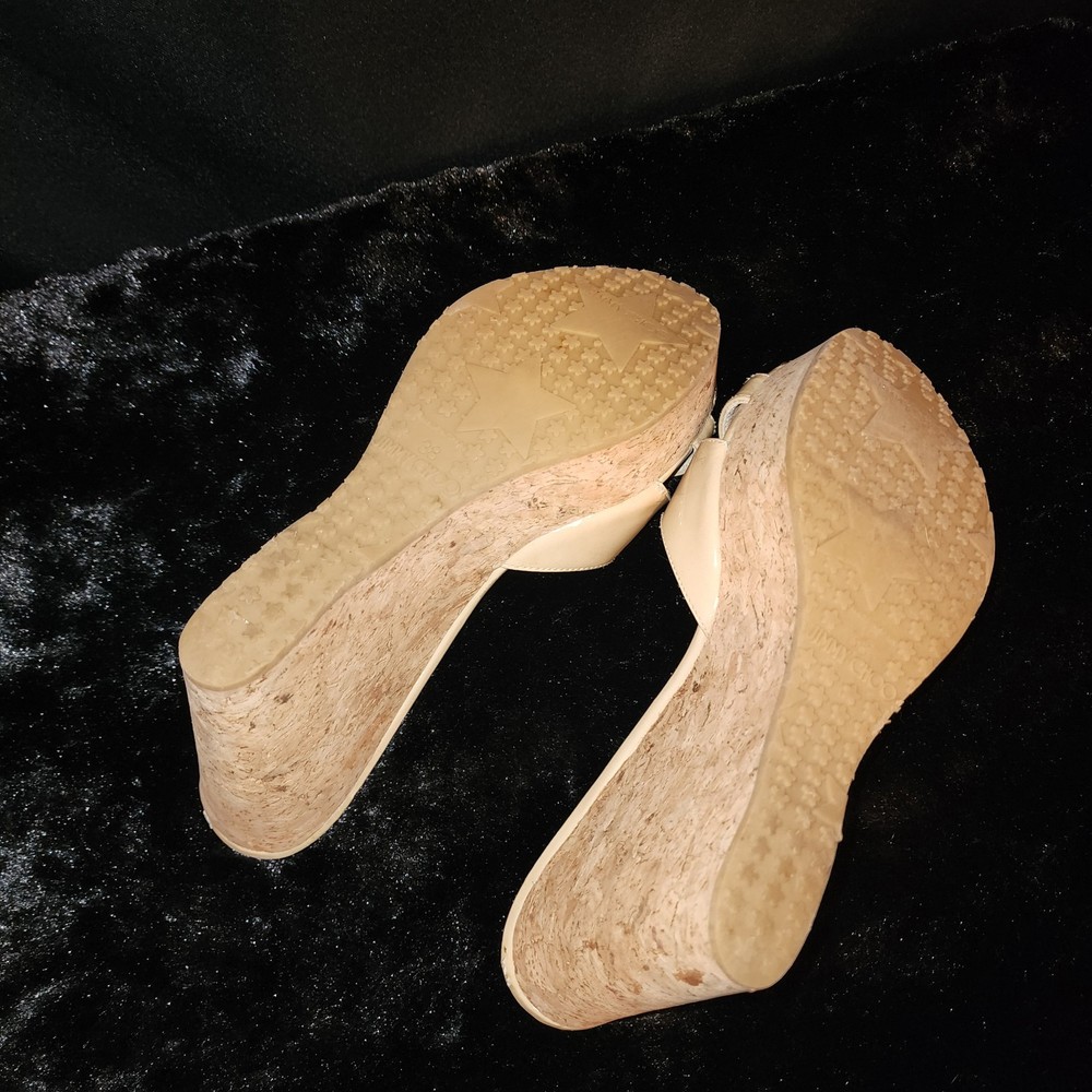 Made in Spain. Size 38 equivalent to 7.5. Color nude. 4" wedge