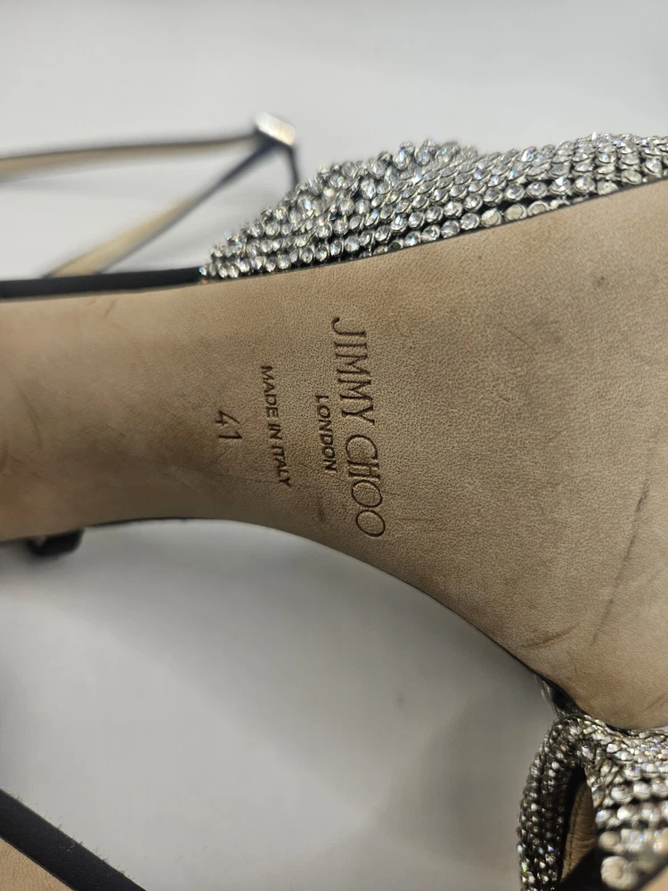 Jimmy Choo Naria 115mm crystal-embellished sandals Size - 41/ 11 New without box or dustbags From the site - Made in Italy silver-tone nappa leather crystal embellishment branded leather insole open toe buckle-fastening ankle strap 115mm high-heel