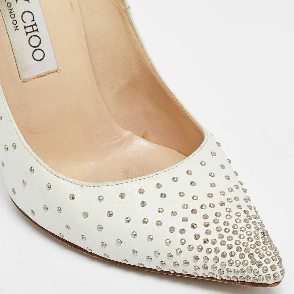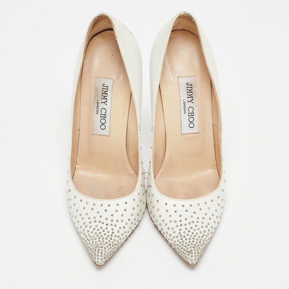 These white leather pumps are where timeless design meets modern allure. Artfully crafted in Italy, the pointed toe silhouette is adorned with delicate pearl embellishments, offering a touch of opulence.Certified by The Luxury Closet - This item has gone through a detailed authentication process overseen by our experts. We offer a lifetime guarantee of authenticity on all our items. Import duties, taxes and charges are not included in the item price. These charges are the buyers responsibility. Please check with your country’s customs office to determine what these additional cost will be prior to buying. Our eBay Store About Us Contact Us Add to Favorite Sellers Jimmy Choo White Leather Romy Pearl Embellished Pointed Toe Pumps 36.5 $185.9 These white leather pumps are where timeless design meets modern allure. Artfully crafted in Italy, the pointed toe silhouette is adorned with delicate pearl embellishments, offering a touch of opulence. Product Details Brand Color White Dimensions Material Leather Size 36.5 Outsole Width 8 cm Outsole Length 25 cm Heel Height 11 CM Includes The Luxury Closet Packaging Certified by The Luxury Closet This item has gone through a detailed authentication process overseen by our experts. We offer a lifetime guarantee of authenticity on all our items. How We Check The in-house team of experts at The Luxury Closet is highly trained to verify the authenticity and the condition of the luxury products. They ensure that only 100% authentic items are put on sale.The evaluation process is unique with its own mix of assessment criteria and differs according to the category. Each item is evaluated based on the following combination of hallmarks, hardware, stitching, symmetry, material, craftsmanship, stamping, codes, hologram stickers, and packaging. Our authenticators also check if the items have been modified or amended (e.g., aftermarket diamonds, replaced batteries, repaired bags, etc.) International Buyers Import duties, taxes and charges are not included in the item price. These charges are the buyers responsibility. Please check with your country’s customs office to determine what these additional cost will be prior to buying.