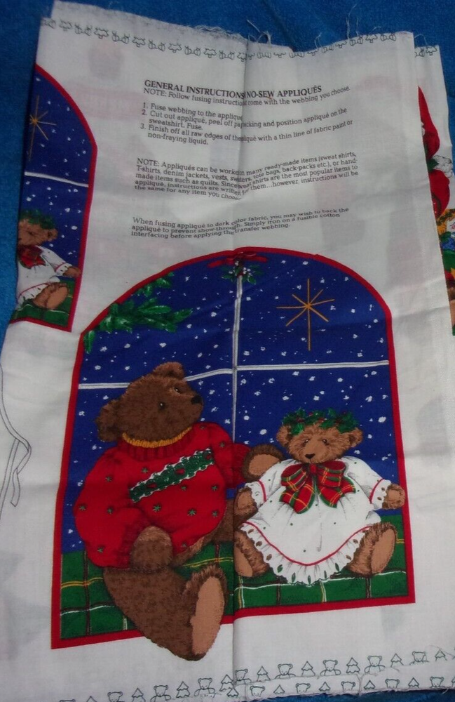 VIP Cranston Print Jingle Bells Bear Merry Christmas appliques Fabric Panel. It measures 43" x 18". It is new and uncut. This item is from a smoke free home. Please contact me if you have any questions. Thank you.