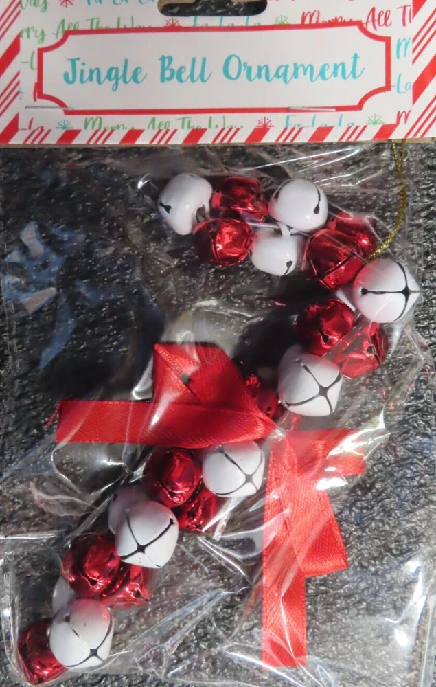 JINGLE BELL ORNAMENT Red & White Bells Candy Cane design THANKS FOR LOOKING!!!!!