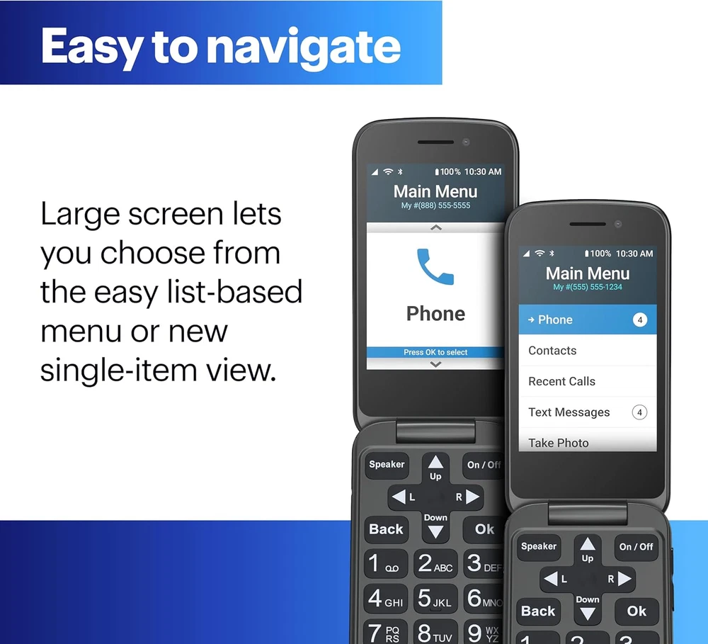 Only Compatible with Lively Phone Service: The Jitterbug Flip2 is only compatible with Lively phone service; plans include unlimited talk, text and 24/7 access to Lively’s caring team Easy-to-Use Flip Phone: The Jitterbug Flip2 flip phone features big buttons, a powerful speaker, and a large screen that lets you choose from a simple list-based menu or one with each item shown on-screen one at a time. Help When You Need It: Once your new phone is activated with Lively, the Lively team is here to help if you want to learn more about your phone, need a ride, have a health concern or have an emergency Online Activation: Activate phone online for easy setup, and for additional questions, call our customer service agents for questions about your service and phone Why Lively: Lively offers Jitterbug cell phones and Lively medical alert devices that help seniors stay connected, safe and healthy Product Description 1 EASY TO NAVIGATE 2 CONNECT 3 EMERGENCY ACCESS Jitterbug Flip2 Red Comparison 4.3" × 2.19" × 0.75" HxWxD 6.6" × 3.01" × 0.35" 4.7 oz. Weight 6.7 oz. 3.2" Screen Size 6.75" Yes, front-facing Camera 13MP/2MP/2MP No Internet Acess Yes Yes, M4/T4 rating HearingCompatibility Yes, M4/T4 rating Up to 12 Hours Talk time Up to 37 Hours 4.3" × 2.19" × 0.75" HxWxD 4.3" × 2.19" × 0.75" 4.7 oz. Weight 4.7 oz. 3.2" Screen Size 3.2" Yes, front-facing Camera Yes, front-facing No Internet Acess No Yes, M4/T4 rating HearingCompatibility Yes, M4/T4 rating Up to 12 Hours Talk time Up to 12 Hours Jitterbug Smart4 Jitterbug Flip2 Gray