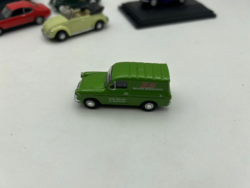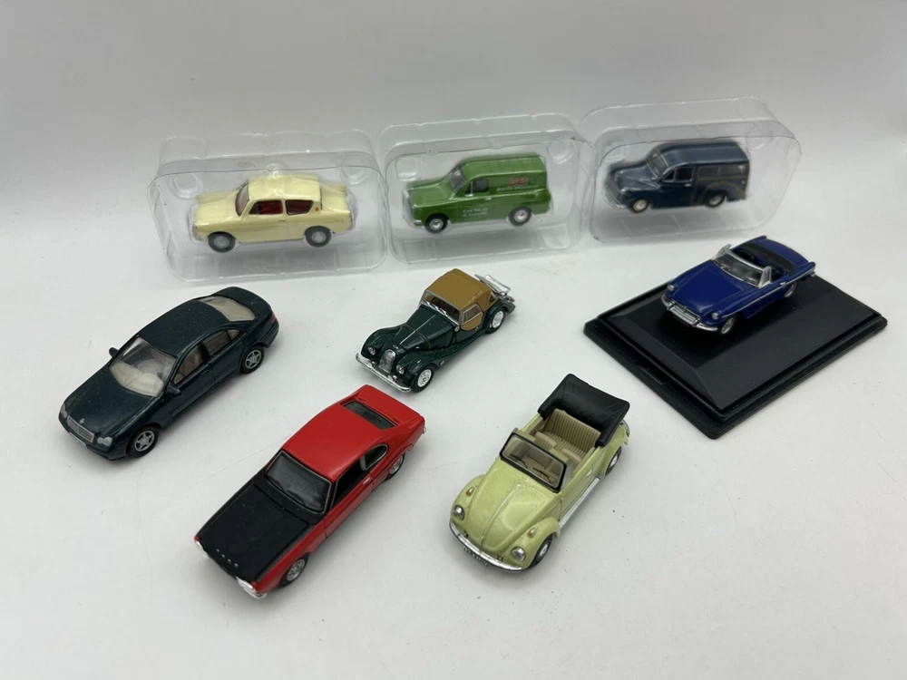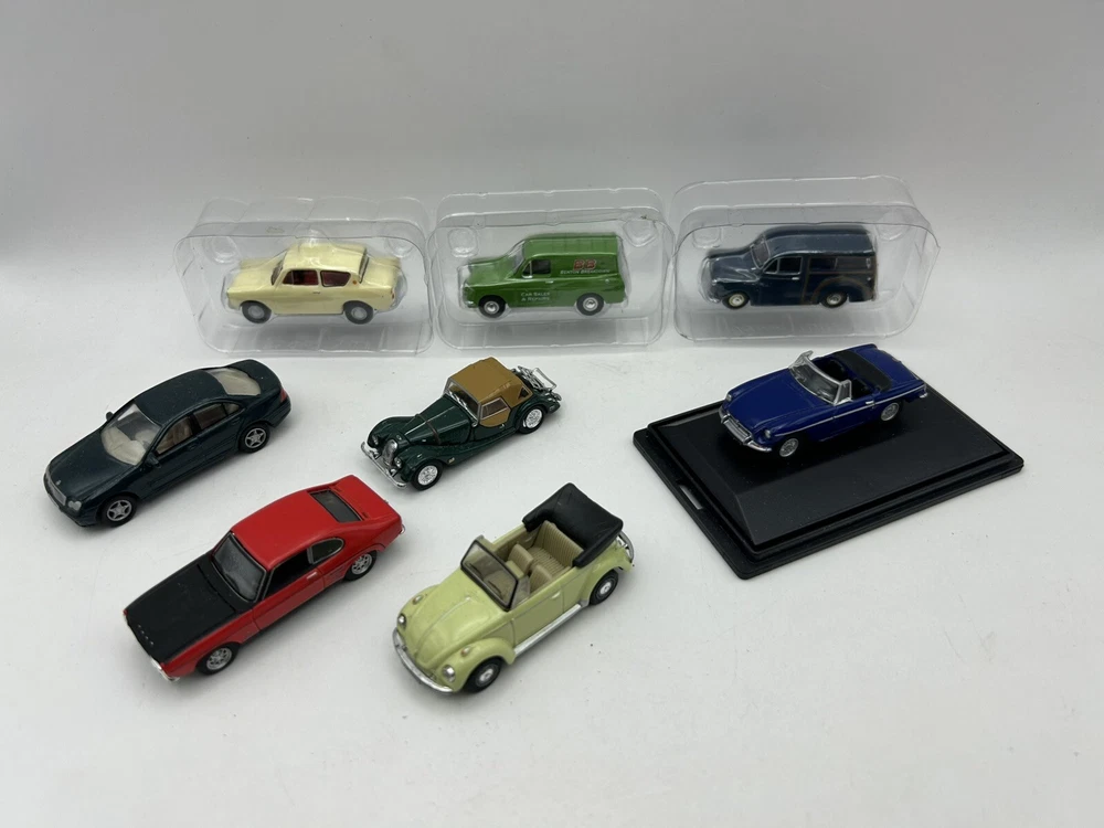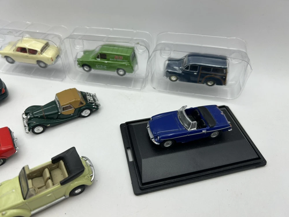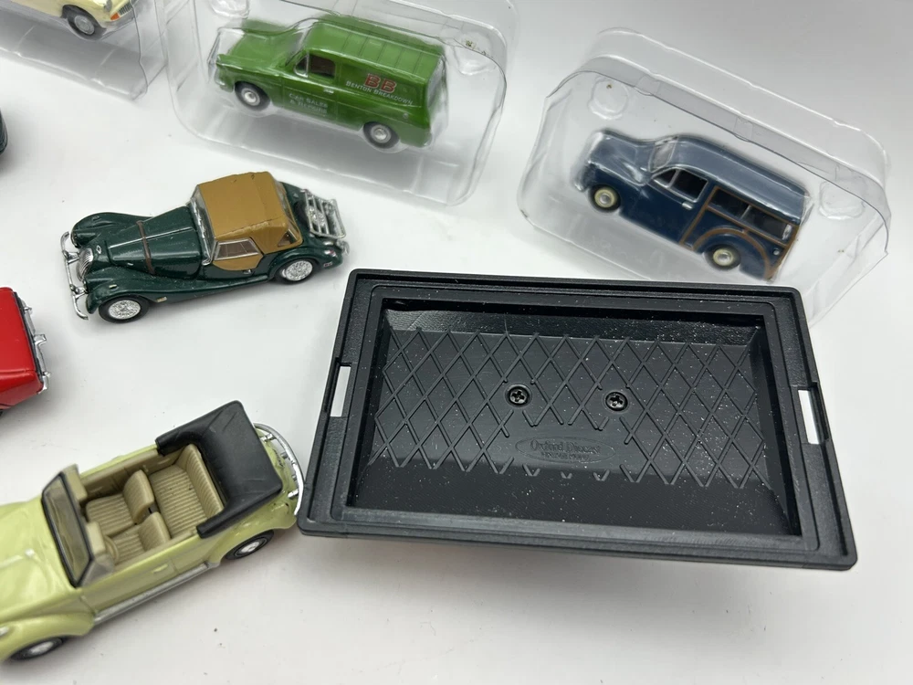 This job lot consists of a bundle of 8 OO gauge 1:76 scale cars from brands like Oxford Diecast. These diecast model cars are ideal for adding to a model railway layout or collection. The vehicles are in very good condition or mint condition, making them a great addition for collectors or enthusiasts looking to enhance their display.