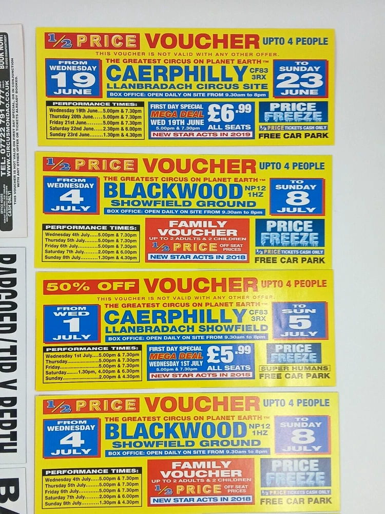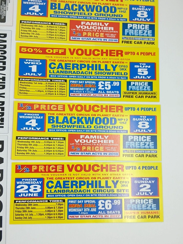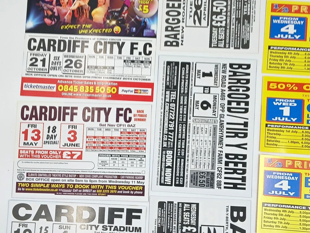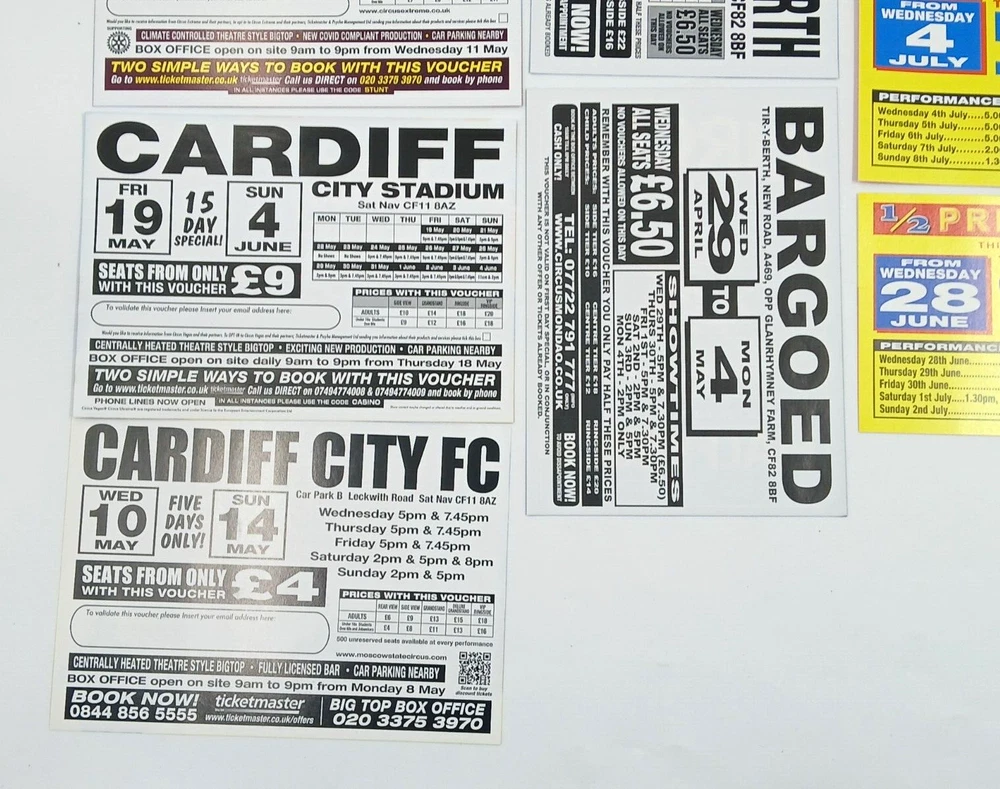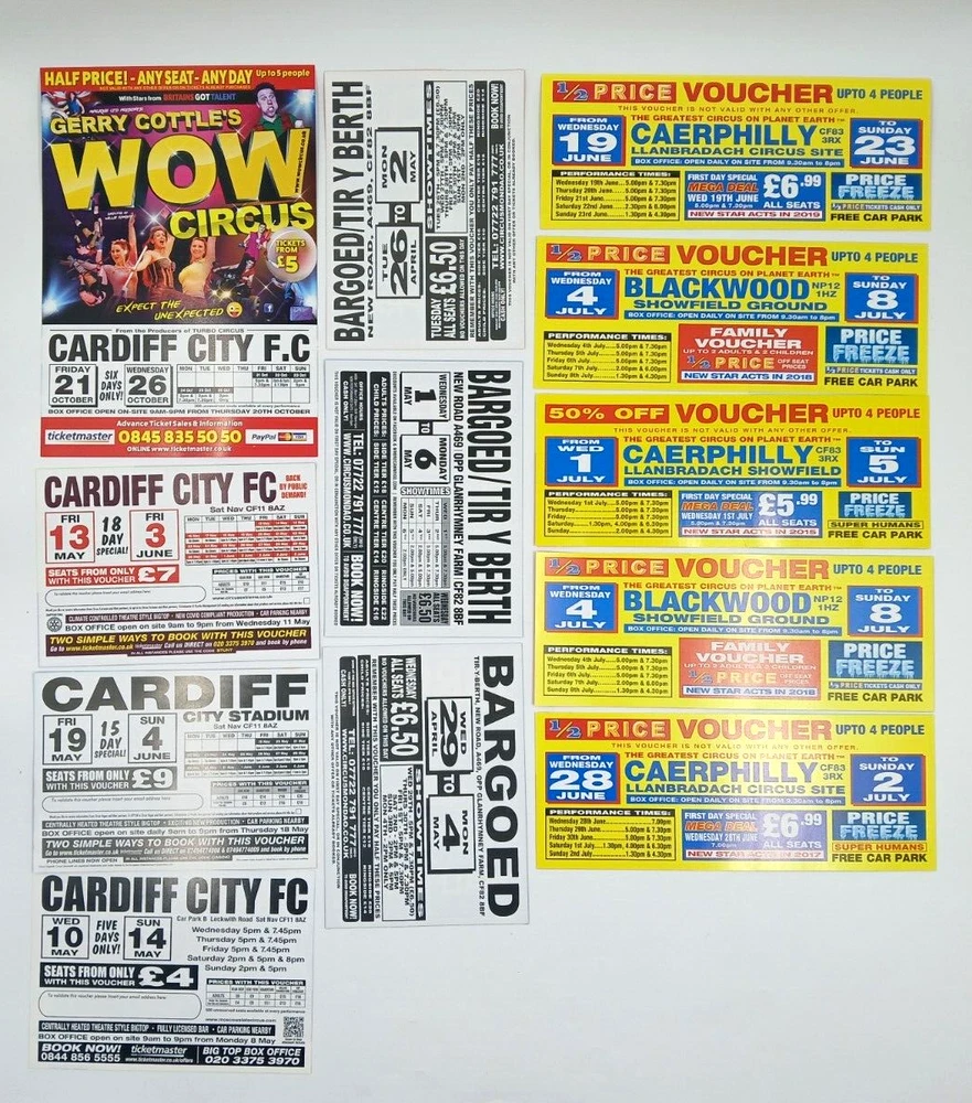 Job Lot Circus Flyers/Vouchers Includes: Circus Mondao, Uncle Sam's Great American Circus, Gery Cottle's WOW circus, Moscow State Circus, Circus Vegas, Circus Extreme Any questions, please ask Thanks for looking!