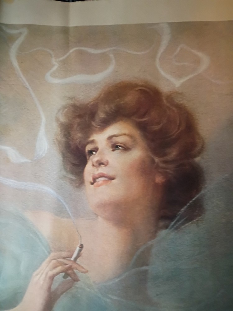 Has spot on right side.The product is an Italian artist's job advertisement featuring a glamorous lady. This collectible ad likely showcases the artist's unique style and talent, making it a desirable item for art enthusiasts and collectors alike. The advertisement may contain intricate details and bold imagery that reflect the artist's personality and aesthetic, making it a valuable addition to any collection of advertising memorabilia.