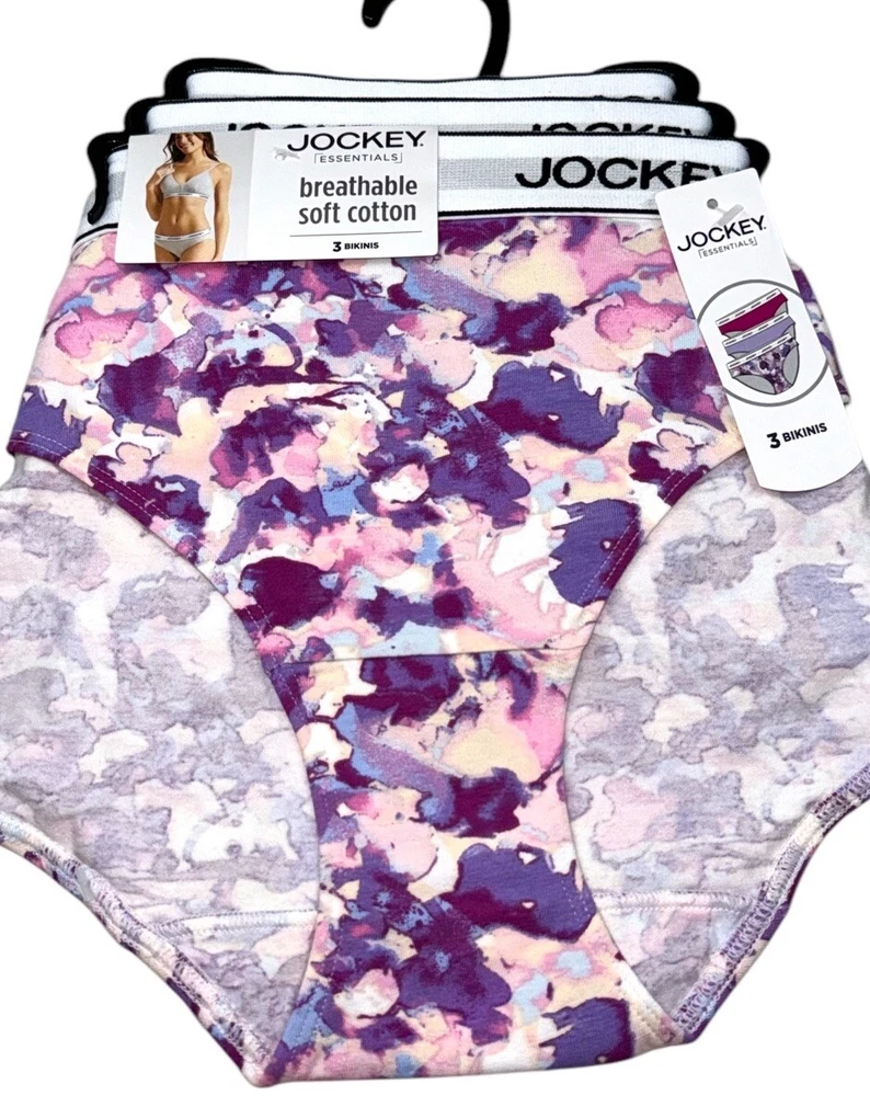 Jockey Women’s 3-Pair Bikini Underwear Panties Cotton Blend Soft Stretch Size XL New With Tags Size: X-LARGE 95% Cotton 5% Spandex Style: 2587 Machine Washable Imported