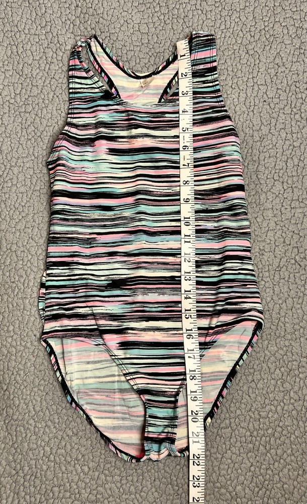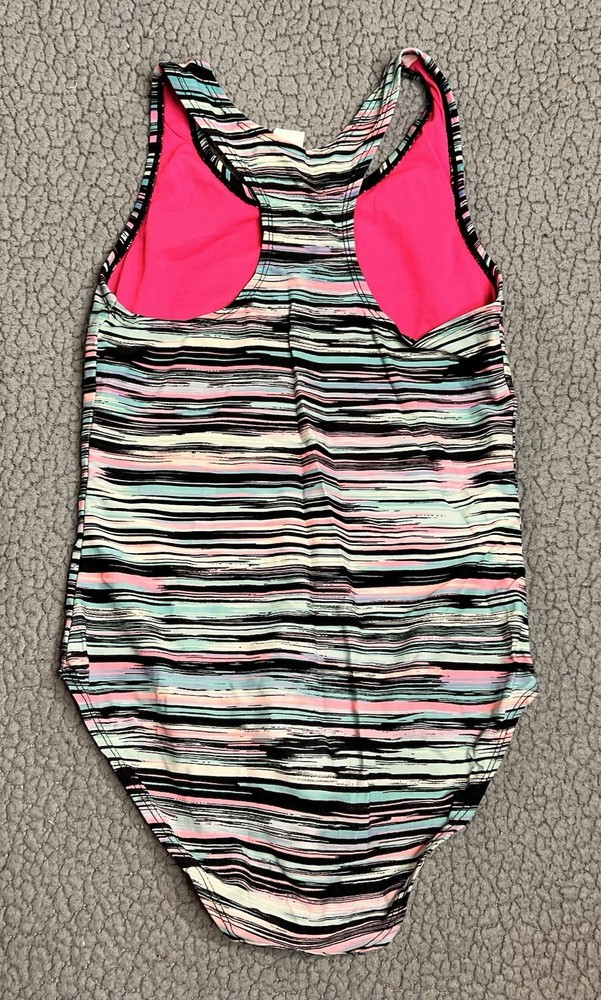 Joe Boxer Little Girls One Piece Swimming Suit Stopes Blue And Pink Girls Size L good condition measurements are in photos SKU(A743)