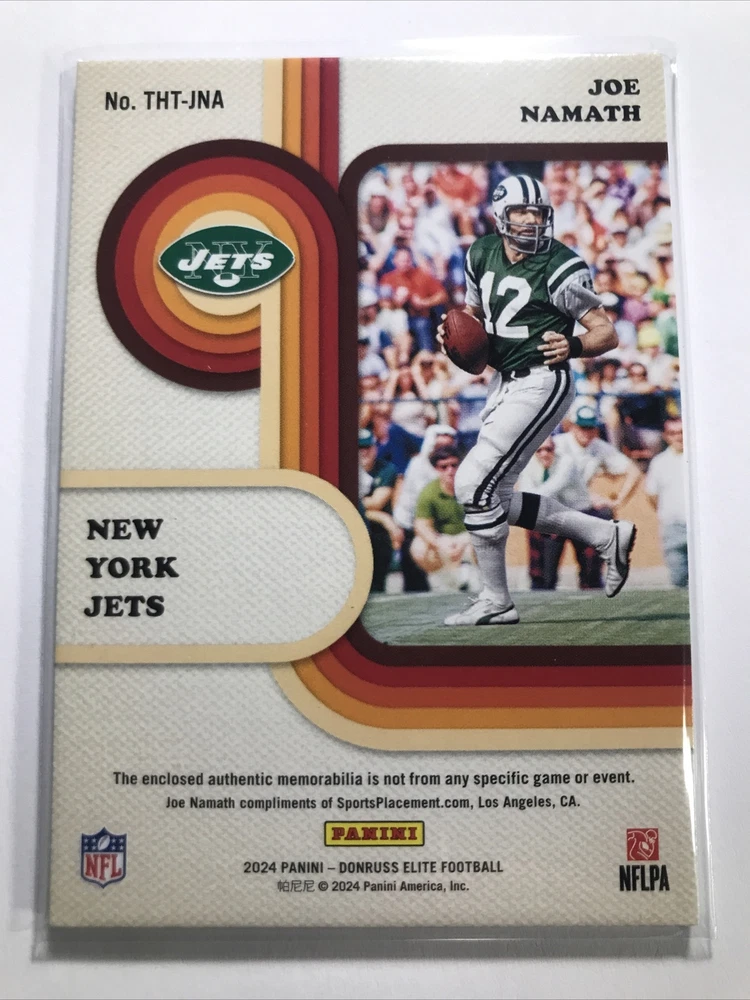 Joe Namath 2024 Elite THROWBACK THREADS GAME JERSEY PATCH SP NY JETS /500. Condition is Ungraded. Shipped with USPS Ground Advantage.