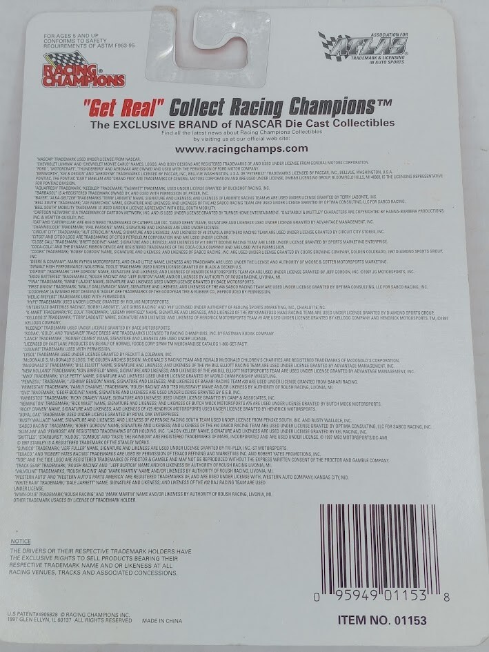 Joe Nemechek Racing Champions 1997 Nascar 1:64 Diecast Car #42 Bellsouth SKU#101513 Look closely at the pictures to see further details. We ships USPS PLEASE see photos for detailed condition!! AC PLEASE LOOK AT THE PHOTOS CAREFULLY BEFORE PURCHASING!! If you are purchasing more than one item from us and would like combined shipping, PLEASE request an adjusted invoice from us while still in the cart and BEFORE paying. eBay does not usually calculate combined shipping accurately and you might get overcharged. Please be aware that when we photograph items, we use lighting that will show the details well. Although we try to present the product as accurately as possible, the lighting may affect the overall look of the item by appearing lighter/darker or possibly a different hue than the actual item. Depending on the type of lighting you have in your home, there may be some differences between the photos and the actual item. If this is a concern of yours, please feel free to request additional photos made in natural lighting or ask for a more detailed description of the item PRIOR TO PURCHASE! PLEASE NOTE: We greatly appreciate your interest in our item for sale. We look forward to a pleasant, quick and satisfying transaction for everybody, so please note the following information before bidding. Thank you! ITEM DESCRIPTIONS: * We will try to describe items well and provide plenty of photos. Please review these carefully before bidding or purchasing. * Only the items pictured and described are what you will receive when purchased. * We will occasionally offer an item clearly marked "AS-IS". This means that we are not sure if it works because we are unable to test it for whatever reason. We will offer these at a discounted price then a similar "working" item. It is possible that these items will work fine, but it also is possible that these items are more useful for their parts. Please only bid on or purchase these items if you are well aware of this, as we will only provide refunds of actual item price (no shipping cost refunds) for these items. * If you have any questions that aren't addressed by the descriptions or photos, please feel free to ask before you bid. * There may be bends, dents or parts of the blister that have minor issues due to long term storage. Such things will be pointed out under the description, please look closely at the pictures for further details. SHIPPING: * We usually do not offer shipping to international addresses, but ARE WILLING TO TAKE CONSIDERATIONS. * We try to pack items as carefully as possible, but damage may occur during shipping. If you receive an item that was damaged in shipping, please contact us and we will work with you to resolve the problem. * We will combine shipping costs for all items the same buyer purchases from us within 2 days. Please wait to pay for items until you're done shopping with us. Please contact us if you're expecting to buy more items from us, or to have us adjust the shipping costs. * We will usually ship items out within 24 hours of payment being received Sunday through Friday at noon. We will notify the buyer if there will be a delay in shipping for some reason. Please allow additional time for holidays and weekends when the post office is closed. If payment is received after noon (EST) on Friday, the item might not be shipped until the following Monday. * We do try to recycle shipping materials as much as possible. RETURNS: We abide by eBay's Money Back Guarantee. We definitely want our customers to be happy with their purchase! You may return an item within 30 days of receiving it with the following guidelines: * If the item is defective or damaged (unless we clearly marked the listing "AS-IS"), the buyer will receive a full refund after the buyer returns it and it is received by us. Customers who falsely claim their item is defective, damaged, or not as described in order to receive a full refund and free return shipping will be permanently blocked from making future purchases from us. * If the item is as described (including "AS-IS" items) and the buyer decides for any other reason than defective/damaged to return it, only the actual price of the item will be refunded once it has been returned and it is received by us. The buyer will be asked to pay all original and return shipping charges. This includes all reasons other than defective/damaged, including wrong size, wrong type, changed mind, etc. All "AS-IS" items will fall into this category of return. Please make sure the item is what you want before purchasing it. * Please contact us before initiating a refund request. FEEDBACK: We always leave feedback at the end of transaction. We consider the transaction to be over when we receive feedback from the buyer confirming the item arrived satisfactorily. If you are unsatisfied with your purchase please contact us before leaving neutral or negative feedback. WE APPRECIATE POSITIVE FEEDBACK IF YOU ARE SATISFIED WITH YOUR PURCHASE! THANK YOU FOR YOUR INTEREST IN THIS ITEM! ! PLEASE see photos for detailed condition!! There may be pieces that are missing or broken including, but not limited too, couplers, brake wheels, steps, ladders, railings, etc. May need detailed cleaning. PLEASE LOOK AT THE PHOTOS CAREFULLY BEFORE PURCHASING!! If you are purchasing more than one item from us and would like combined shipping, PLEASE request an adjusted invoice from us while still in the cart and BEFORE paying. eBay does not usually calculate combined shipping accurately and you might get overcharged. Please be aware that when we photograph items, we use lighting that will show the details well. Although we try to present the product as accurately as possible, the lighting may affect the overall look of the item by appearing lighter/darker or possibly a different hue than the actual item. Depending on the type of lighting you have in your home, there may be some differences between the photos and the actual item. If this is a concern of y