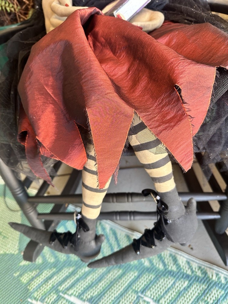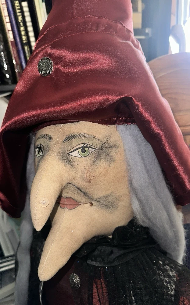 Original Joe Spencer Winnie witch doll. Extra large. Came to us without her hat, made her a new one matching as closely as possible. She’s worth the work, amazing doll. List price reflects the hat modification. Please see photos for any questions and or clarification. Winnie would be a nice addition to your Halloween collection.
