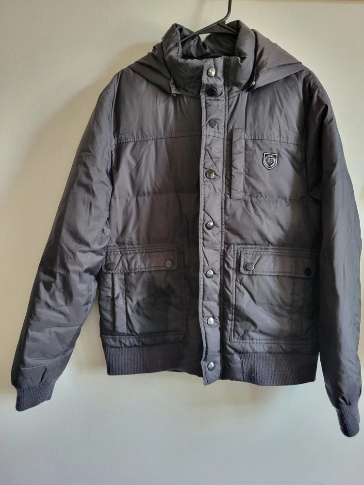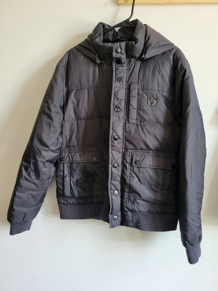 The Joe's Puffer Parka Jacket in Men's Medium Gray is a stylish and practical outerwear option for casual occasions. Made from durable polyester material with a solid pattern and drawstring closure, this parka features a hood for added protection against the elements. The logo accents and outdoor theme give it a trendy look, perfect for activities like skiing. With its regular fit and high-quality construction, this jacket from Joe's Jeans is a great addition to any man's wardrobe.