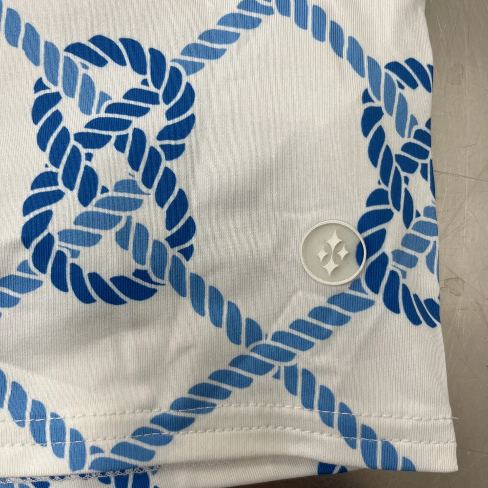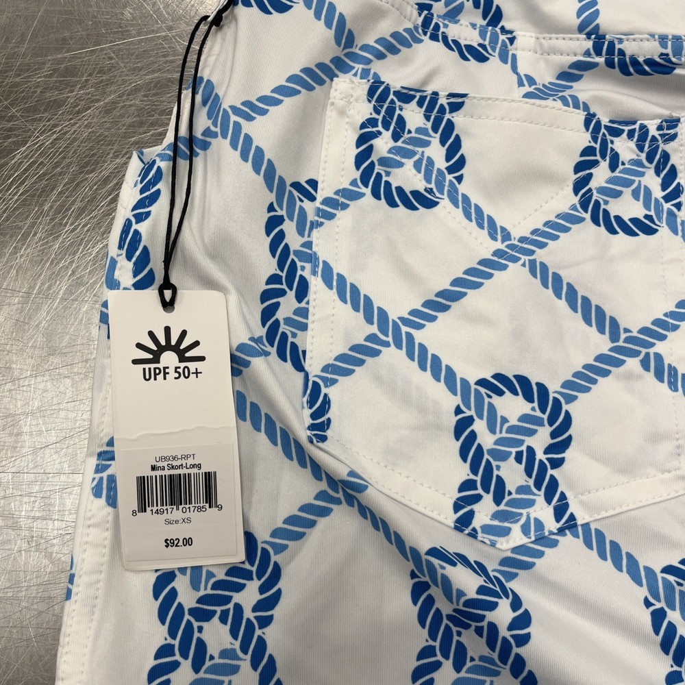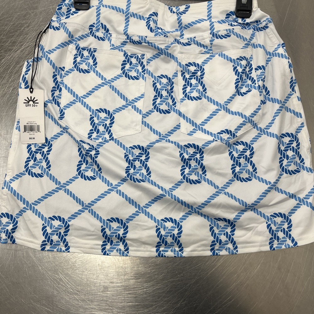 The Jofit Golf Tennis Pickleball Skort in Blue White is a stylish and functional activewear piece designed for women in size XS. This skort features a floral pattern with a colorful blue character, making it perfect for casual or athletic occasions. The pull-on closure and elastic waist provide a comfortable fit, while the polyester-spandex material ensures stretch and breathability. With features like sun protection, moisture-wicking, and quick-drying properties, this skort is ideal for activities like tennis, golf, and pickleball during the summer and spring seasons.