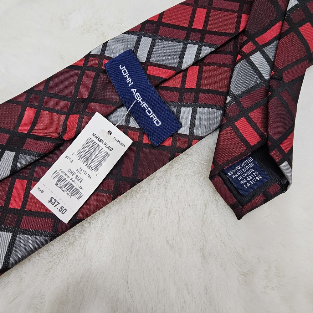 NWT John Ashford Mens Tie Black Red See photos for best representation.