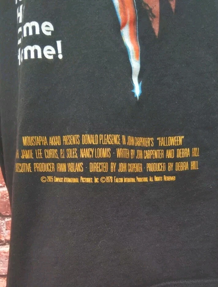Show off your love for the iconic horror movie, John Carpenter's HALLOWEEN, with this limited edition movie poster t-shirt. Featuring Michael Myers in a menacing presence, this shirt is perfect for any fan of the genre. Made from comfortable, preshrunk cotton, it is easy to care for and packable for any season. The black t-shirt has a regular fit and short sleeves, with a crew neckline that adds a touch of classic style. The shirt is adorned with the movie's logo and a bold graphic print that captures the essence of the film. Perfect for any occasion, this t-shirt is a must-have for any horror movie enthusiast. If you like this item, but don't like the price, please feel free to contact me anytime/and or make an offer. Thank You