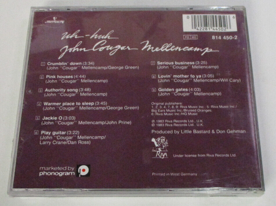 CD Details: Uh-Huh John Cougar Mellencamp Song Titles - see photo CD is good - light scratches which don't affect play CD insert is good Crystal case is good, moderate wear Buyer to pay postage where indicated. Please contact me prior to bidding if you require further information.