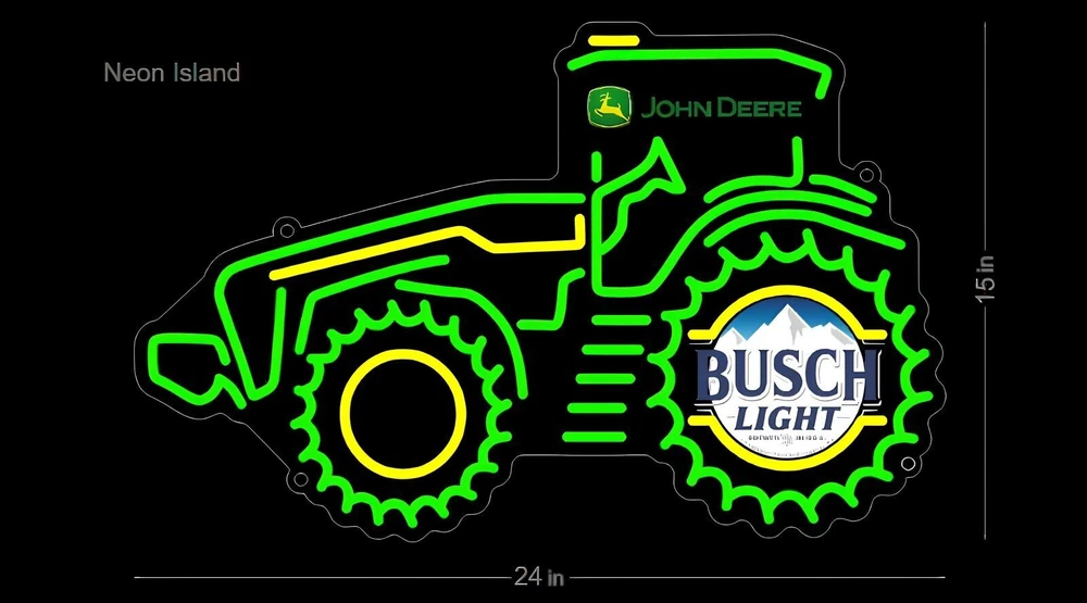 John Deere Farm Tractor Busch Light Beer LED Neon Light Lamp Sign With Dimmer Material: Flexible LED Neon Strip, Acrylic Sheet. Size is 31" NOTE: Its Not a Glass Neon. Its a Flexible led Neon Strip With Back Acrylic Sheet. Logo didn’t lightning up its a Sticker Paste on acrylic sheet. Neon signs make GREAT gifts! All of our signs are neon! They are true hand-blown, neon signs! All of our signs come complete with everything you need. Just hang them up, plug them in, and enjoy! Display them anywhere you like. They are quiet, cool to the touch, and energy-efficient! Contact us Communication can solve 100% of problems, we care every single customer. If you have any questions please do not hesitate to contact us , We will reply within 24 hours. Warranty & Return Standard One year of quality warranty period. If you receive the sign and find it broken, please contact us with pictures of the neon sign. Custom neon sign: We also do custom neon sign for our customers, please send us the picture or words you want to make into neon sign, then we will make a mockup for you in which all the details are mentioned including full price and dimensions. Neon Island