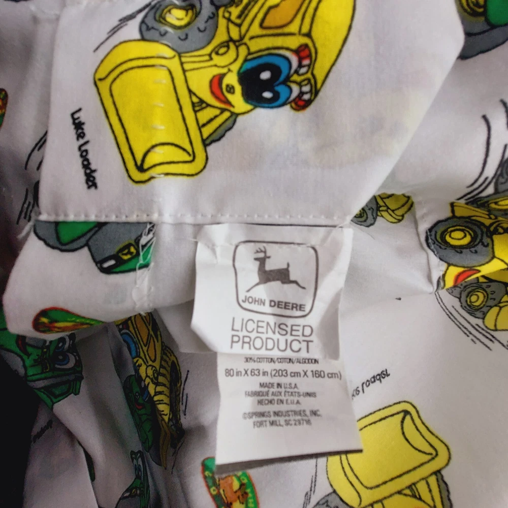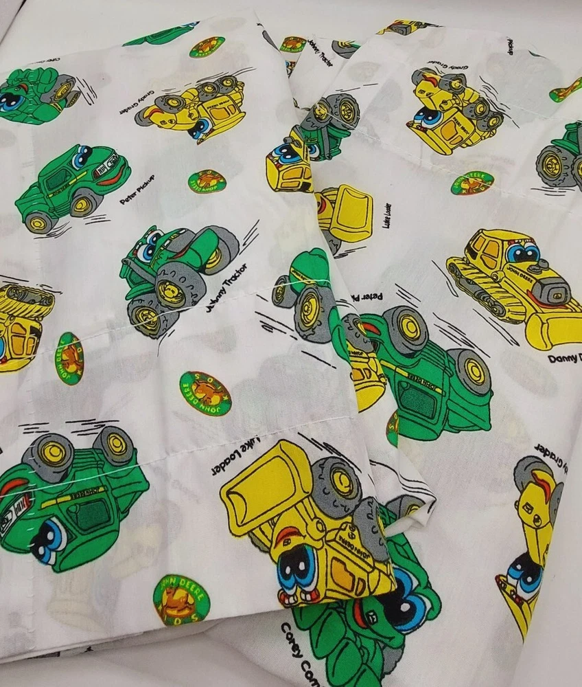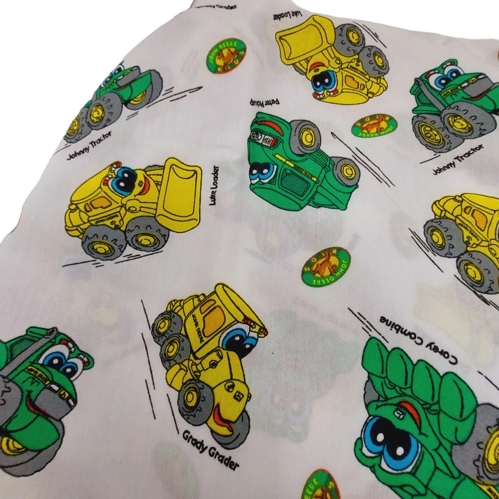 John Deere Kids Curtain Panel x2 White Green Yellow 80x63 Decor Crafts