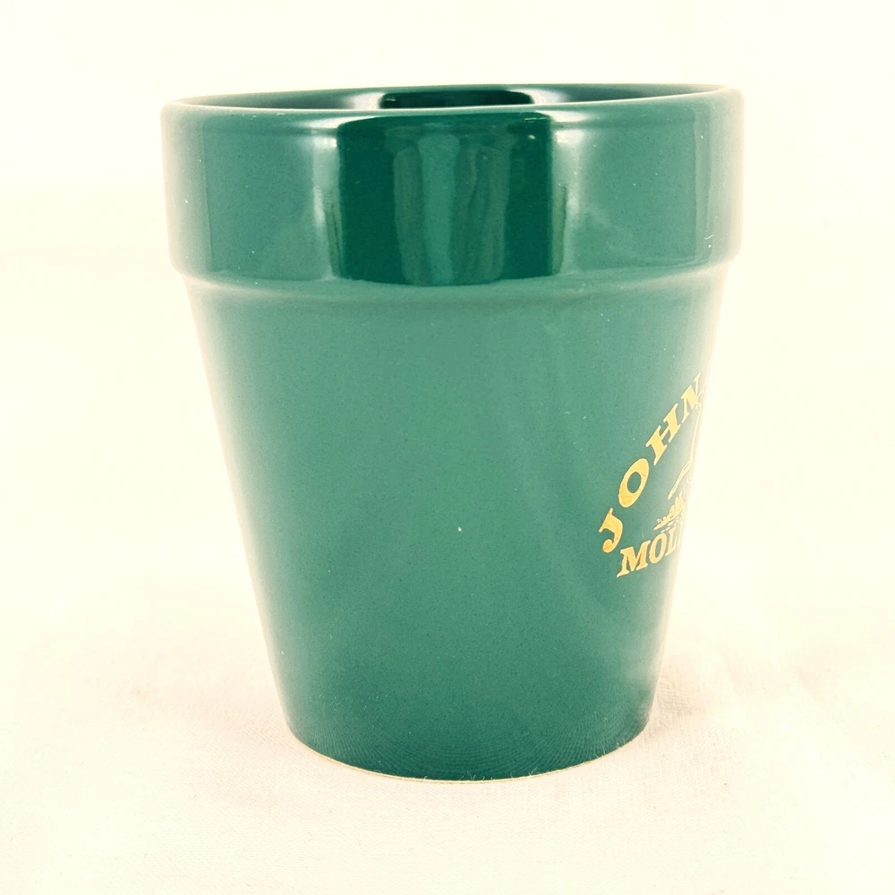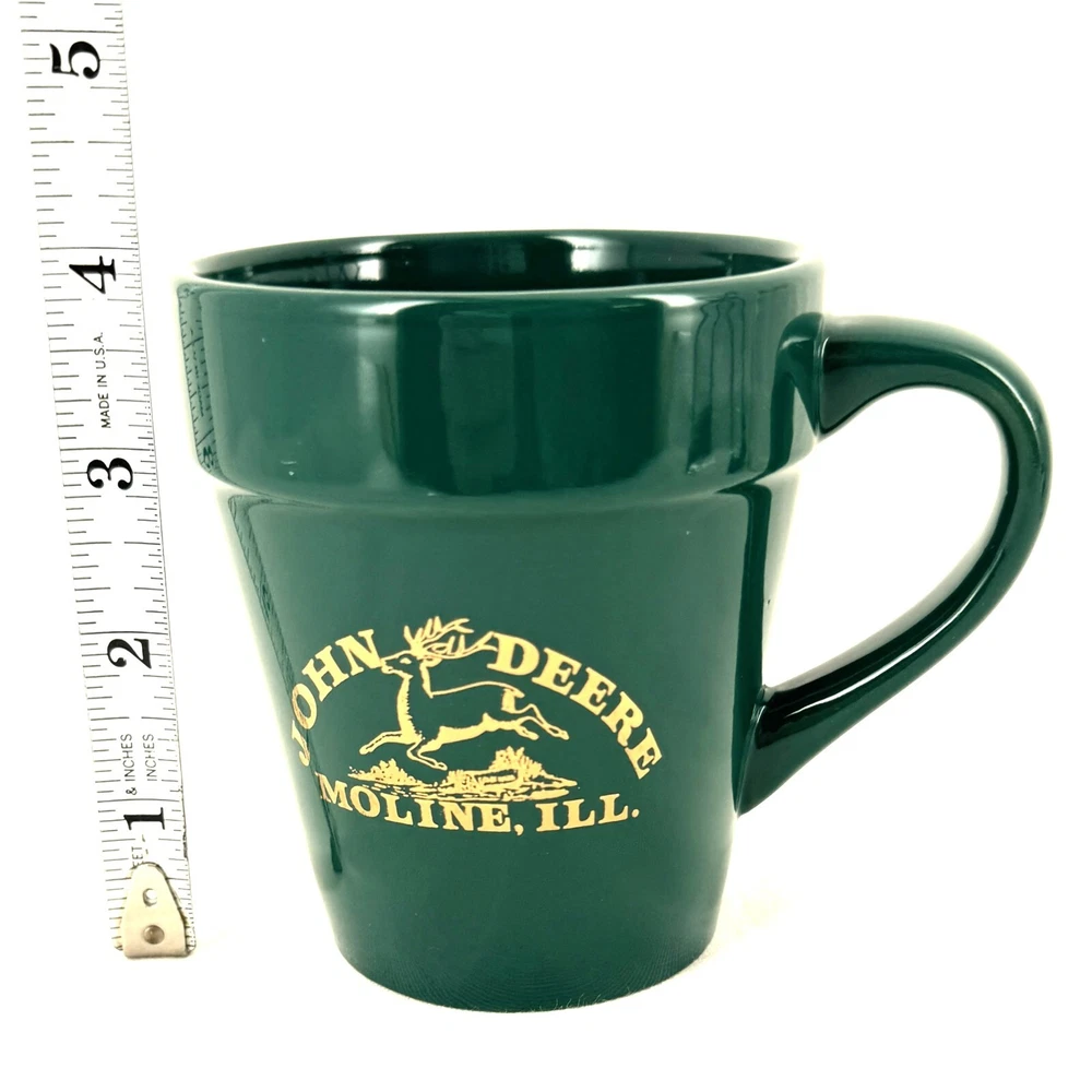 Offering one John Deere Mug shaped like a flowerpot with gold lettering "John Deere Moline ILL". Good condition with light surface scratches, no chips or cracks. It measures 4” high x 3 3/8” diameter. Please view the photos for details and condition. Measurements and photo colors are approximate. Terms of Sale: Photos are of the actual item you will receive and sold "as is". Placing an order is your agreement that you know what you are buying, have viewed the photos and find the condition acceptable. Use Ebay Messages to contact me with questions or concerns about your order. Shipping will be USPS Ground Advantage at the rate determined by Ebay. Please inspect your items upon arrival and contact me if there are any problems. No returns please.