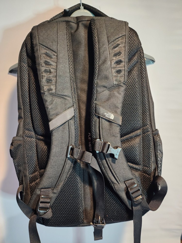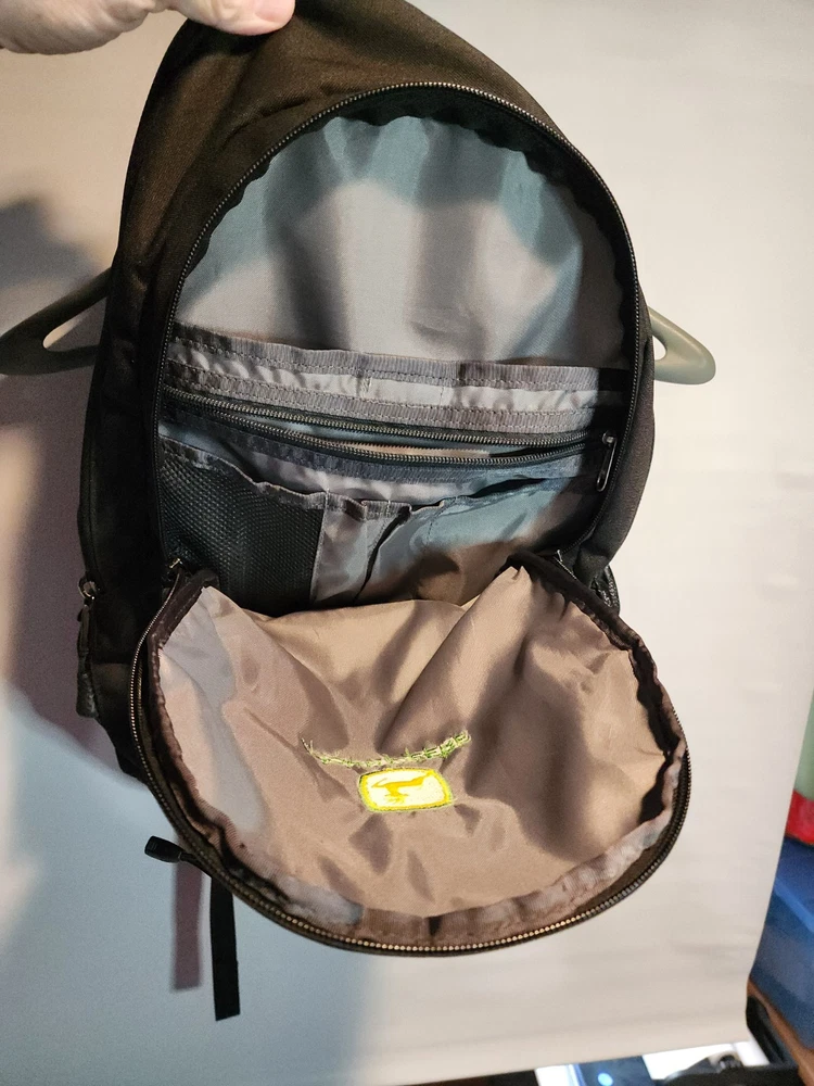 All zippers fully intact. Beautiful John Deere embroidery. No tears. This John Deere The North Face backpack is the perfect accessory for any outdoor enthusiast. With a divider system, laptop compartment, and external pockets, it is incredibly organized and easy to access your items. The backpack is also lightweight and padded, making it comfortable to carry on long hikes or camping trips. The black color and sleek design of the backpack are sure to impress, and the brand's reputation for quality ensures that it will last for years to come. Whether you're backpacking or hiking, this backpack is a must-have for any adventure seeker.