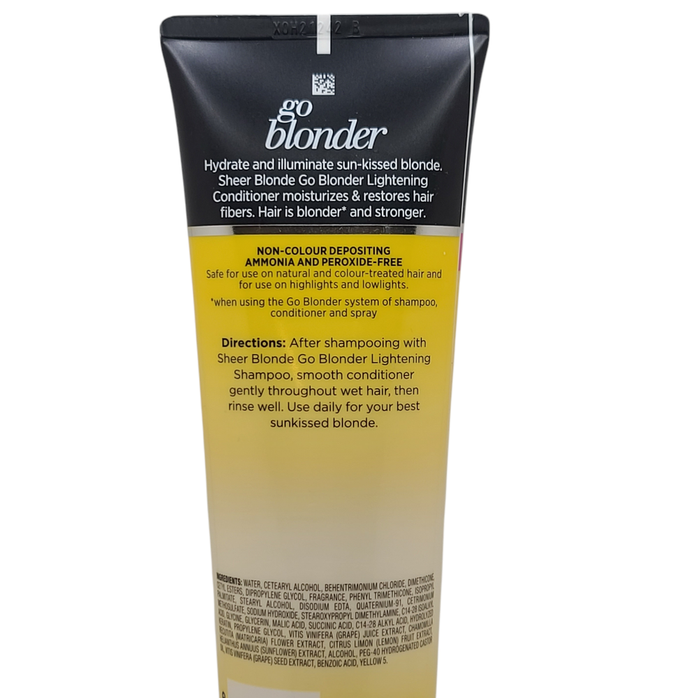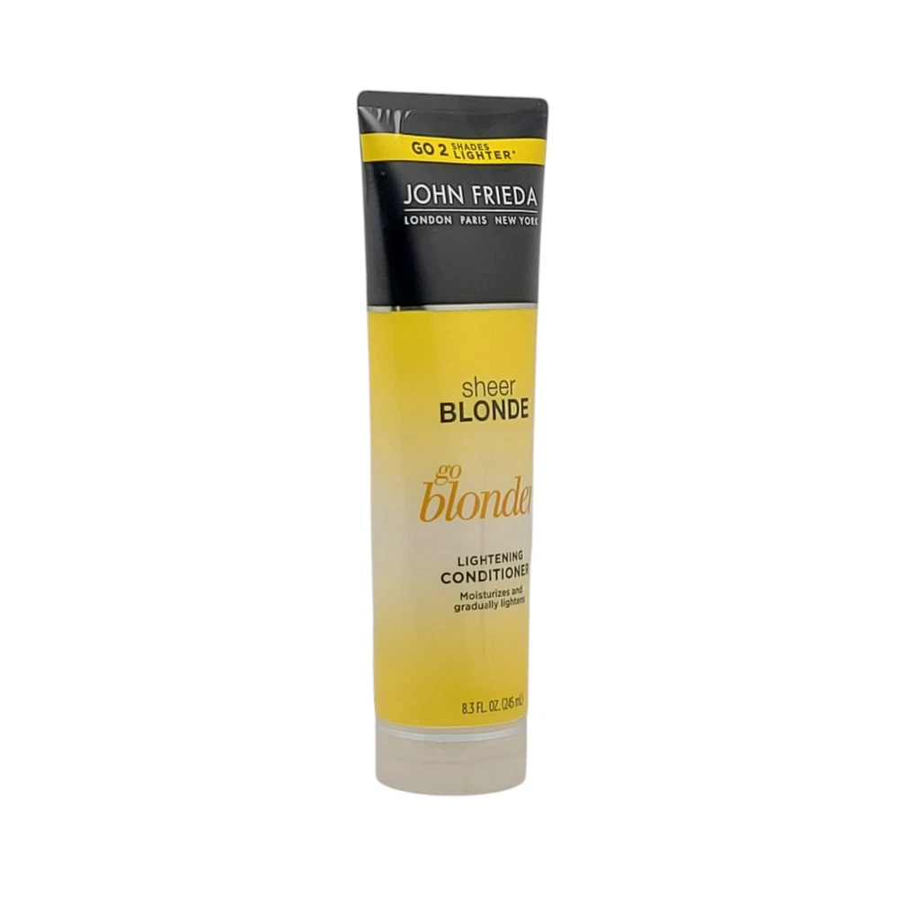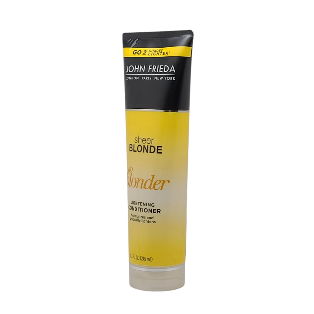 KleverKosmetics Our eBay Store About Us Contact Us Add to Favorite Sellers John Frieda Go Blonder Lightening Conditioner 8.3 oz *Packaging May Vary* ** Packaging May Vary ** John Frieda's Go Blonder Lightening Conditioner is designed to gradually lighten and brighten natural, color-treated, or highlighted blonde hair. Infused with citrus and chamomile, this conditioner not only enhances your hair's natural highlights but also restores moisture for a sun-kissed glow. It's gentle enough for daily use and free from ammonia and peroxide, ensuring your hair remains healthy and vibrant. Gradual Lightening: Gently lightens blonde hair over time, providing a natural, sun-kissed look. Safe for Daily Use: Free from ammonia and peroxide, making it suitable for everyday application without damaging hair. Color-Treated Hair Friendly: Ideal for natural, color-treated, or highlighted blonde hair, helping to maintain and boost color vibrancy. Moisture Restoration: Replenishes and maintains hair's moisture balance, leaving it soft and manageable. Natural Ingredients: Formulated with a blend of citrus and chamomile to enhance brightness and shine. Return and Refund Information • Please be aware that colors on the screen may appear slightly different in person. • Please be familiar with product. Feel free to contact us if you have any questions. • DUE TO HEALTH AND SANITARY ISSUES CONCERNING COSMETICS OR SKINCARE WE DO NOT ACCEPT RETURNS ON THESE ITEMS. ALL SALES ARE FINAL. • WE WILL ONLY ACCEPT RETURNS WHEN THE ERROR IS ON OUR END. • Attention VeRO members: We're not affiliated with or endorsed by the companies mentioned in this listing. All trademarks and copyrights are acknowledged, they are only used for informative description of the items offered for sale. Warranty information We are not an authorized dealer of this product and any warranty included with the product may not be honored by the manufacturer.