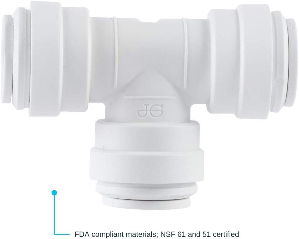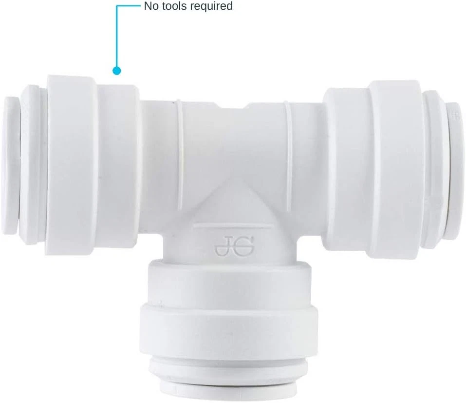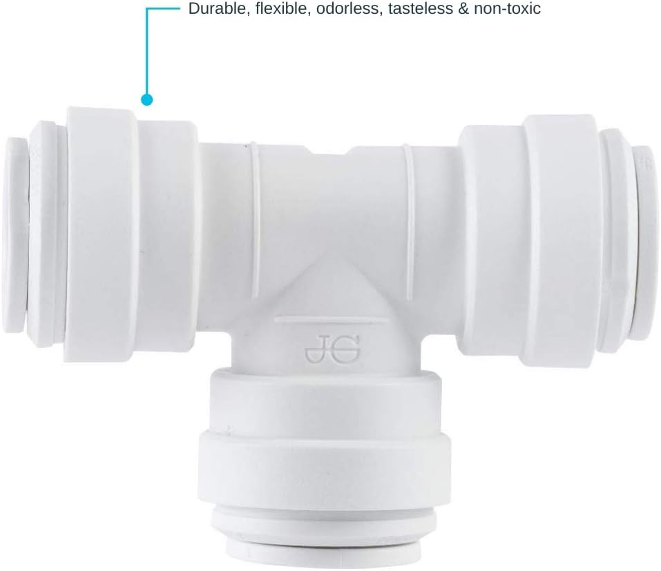 Store New Arrivals Add to Favorite View Feedback John Guest Speedfit 3/8 Inch X 3/8 Inch X 1/4 Inch OD Reducing Tee, Push to Connect Plastic Plumbing Fitting, PP30121208WP Description Item model number PP30121208WP Warranty Description 25 Years Thread Size 0.375 inch Batteries Included? No Measurement System inch Usage Amateur, Professional Number of Pieces 1 Batteries Required? No Brand John Guest Material Plastic Installation Method Push-to-Connect Thread Type NPT Is Discontinued By Manufacturer No Manufacturer Reliance Worldwide Corporation Item Package Quantity 1 Item dimensions L x W x H 5 x 7 x 1 inches Connector Type Tee Item Weight 9.07 g Exterior Finish White Part Number PP30121208WP Certification High chemical resistance Color White Global Trade Identification Number 00665626120138 Included Components Union Tee Connector Product Dimensions 5 x 7 x 1 inches Size 3/8 in. x 3/8 in. x 1/4 in. JOHN GUEST TEE CONNECTOR: This reducing tee is designed for the connection of plastic or copper pipe and is approved for behind-the-wall applications as a permanent leak-free connection DESIGN: This push-to-connect fitting is equipped with EPDM O-rings that utilize John Guest's push-fit technology to make easy, reliable, and leak-free connections DURABLE: This tee connector is made with durable white polypropylene that provides excellent protection against chemicals SPECS: These union connectors can withstand a pressure of 150 PSI at 70 degrees F and 60 PSI at 140 degrees F SAFETY: These plumbing fittings are manufactured with FDA-compliant material and are NSF 61 and 51 certified Product Description Simplify your plumbing and home improvement projects with the John Guest Tee Connector. This push-fit reducing tee adapter is manufactured from durable white polypropylene and equipped with EPDM o-rings that utilize John Guest's push-fit technology to make easy, reliable, leak-free connections. These adapters have been designed to connect plastic or copper pipe and are approved for behind-the-wall applications as a permanent leak-free connection. Push-to-connect fittings provide a simple, quick, reliable, and leak-free connection with no tools required. FDA-compliant material; NSF 61 and 51 certified From the Manufacturer Push-fit plastic fitting for the connection of plastic, copper, and CPVC pipe. Designed, manufactured and assembled by John Guest Speedfit. Simply push the fitting fully onto the pipe and twist the plastic nut clockwise to lock in place. Should the need arise to demount the connection unlock the nut and push the collet towards the body of the fitting and pull the pipe to release. The fitting ensures an easier working environment in confined places, is approved for behind the wall installations, and removes the need for hot works on site. Installation can be reduced by around 40-Percent when compared to traditional fixing methods. ABOUT US We offer the best prices around on high quality products. Our E-store includes media such as books, movies, music and games while offering electronics, toys, sporting apparel, clothing, tools, general home, garden items and more. SHIPPING We are always working hard to ensure your package arrives as soon as possible. Please understand that some factors like weather, high postal traffic, and the performance of shipping companies are outside of our control. We offer free shipping to the lower 48 states and ship within 2 business days of payment, usually sooner. We do not accept P.O. Boxes. Please provide a physical address. RETURNS We offer a 30-Day Return Policy on items which you are not completely satisfied with. You have the option for a full-refund or an exchange of the item. No returns are available on items shipped outside of the USA. PAYMENT We accept PayPal. CONTACT US This page content is yet to come Please ad us to your favorite seller and visit again later Thank You