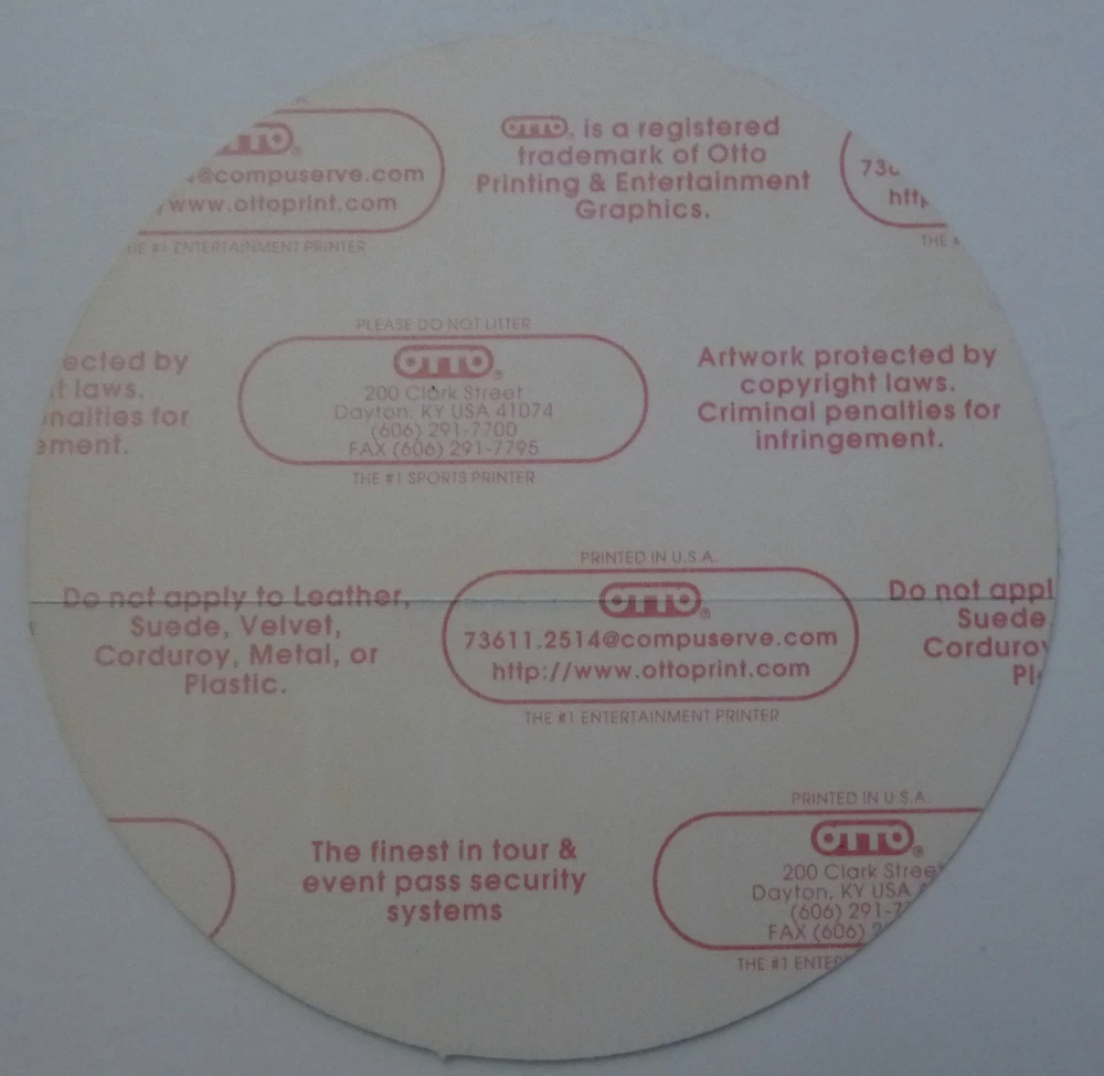 This listing is for a single backstage pass as shown and described above...Both sides are shown..These came in a large collection of passes from the owner of Otto Passes, David Otto...Otto Passes have been a go to name for artist for more than 40 years.. Please see the attached photo(s) and e-mail me with any questions prior to purchase...Stated shipping is inside the Continental USA. PLEASE NOTE....WE SHIP ON TUESDAYS AND FRIDAYS!!!