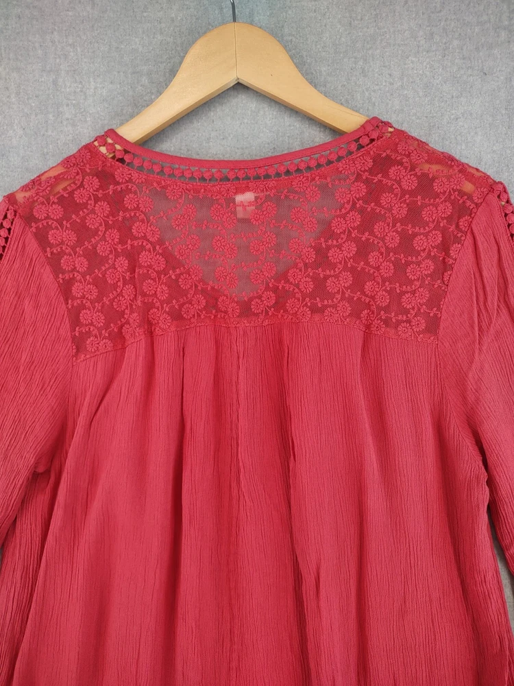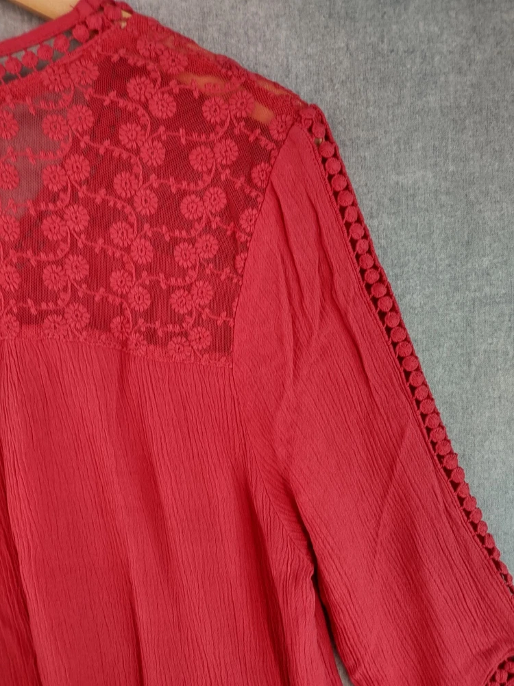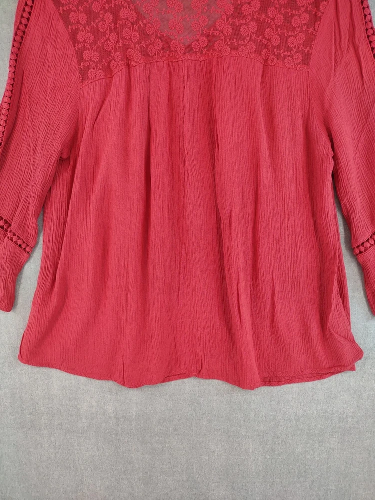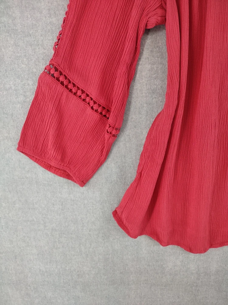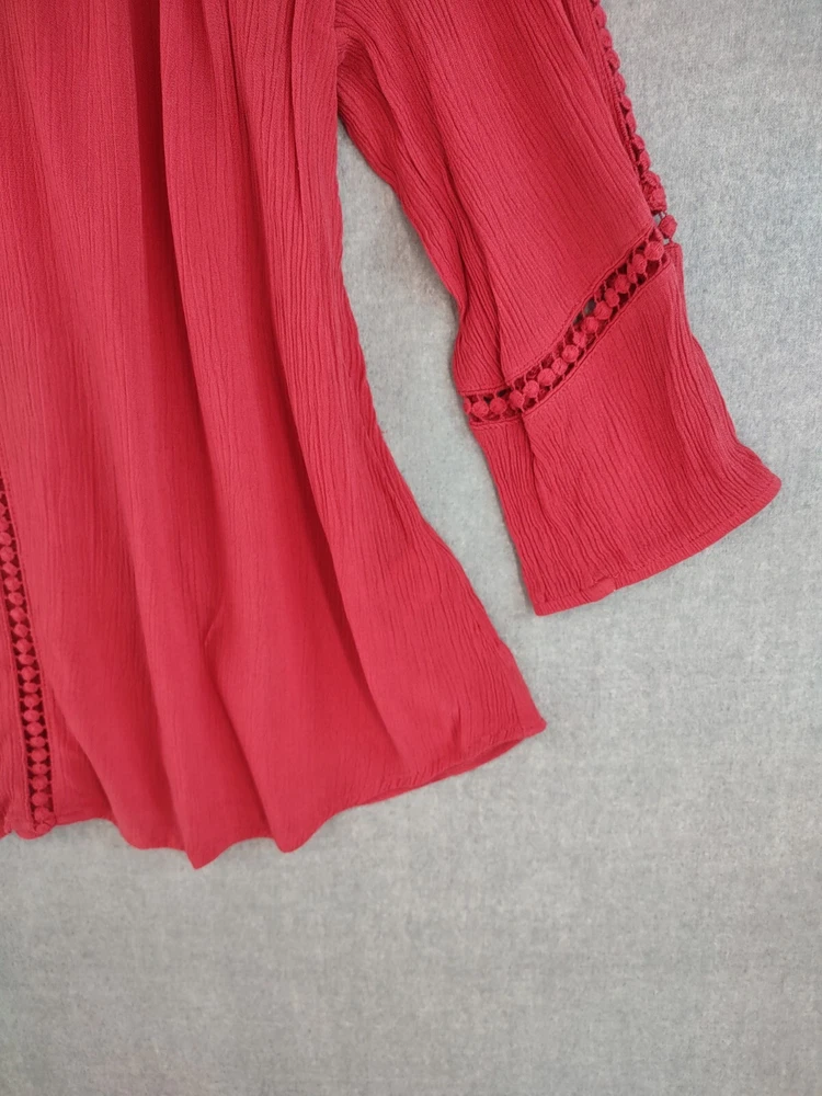 JOHN PAUL RICHARD Crinkle Rayon Crochet V-neck Tunic Top Womens Large Red Bohemian LENGTH: Measured from the top of the shoulder to the hem. WIDTH: Underarm to underarm, measured flat from left to right. SLEEVE LENGTH: Measured from the underarm to the hem. It is always best to compare the measurements above with a top that fits you comfortably. CONDITION - Excellent pre-owned condition. See the photo gallery to view this items measurements and condition. SHIPPED - USPS First Class Mail RETURNS accepted, must be returned within 30 days in original condition to receive a full refund. SHIPPING AND HANDLING We ship all packages within five business days Monday through Friday except Holidays. Consolidated shipping is available for multiple purchases. Thank you for helping our planet and buying previously owned and loved items. I am grateful for your business. Enjoy! Check out our eBay store and follow us. There are new listings daily. CUSTOM SKU: Disclaimer: While we make every effort to capture the most accurate depiction of every item when photographing, colors may vary from screen display to in person therefore we cannot guarantee "exact shade" on any item. Message us if you have questions.