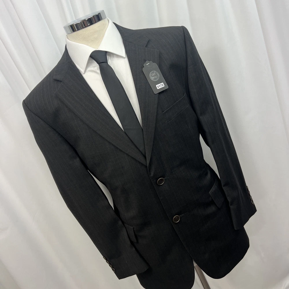 ROCHA JOHN ROCHA Charcoal stripe pure wool 2 piece suit Crafted from high-quality pure wool Jacket Chest: 42S Inside Pockets: 4 Front Pockets: 2 Breast Pocket: 1 Buttons To Each Cuff: 4 Buttons To Front: 2 Back Vents: 2 Shoulder To Cuff: 24.5" Armpit To Cuff: 15" Armpit To Armpit When Laid Flat: 22" Shoulder To Shoulder: 18.5" Collar to Hem: 30.5" Trousers Waist: 36" Zip Front Pockets: 2 Back Pocket: 2 with Button (1 button missing) 1 Button & 2 Hook Fastenings Inside Leg: 28.5" (Can Drop 1 1/2") Width of Hem at Bottom of Trousers: 9" Please note: Colours may slightly vary due to lighting conditions Each item undergoes meticulous hand-measured scrutiny; sizes may not align precisely with the label Review measurements and review the item description/photos before placing your bid Unfortunately, we cannot provide additional photos once items are listed The shirt and tie are not included unless explicitly stated in the listing Questions and concerns: Reach out to us through the ebay messaging system - we aim to respond within a maximum of 12 hours Ironing guidelines: Garments may arrive with minor creases Refer to the care label and use continuous steam when ironing We recommend dry cleaning for best results and peace of mind Your feedback matters: Please leave us a 5-star rating if satisfied For issues or concerns, please contact us before leaving feedback Returns: We offer a generous 30-day return period, via the ebay returns centre Please return items in their original packaging with all tags attached Buyers cover return shipping costs unless items are faulty or inaccurately listed