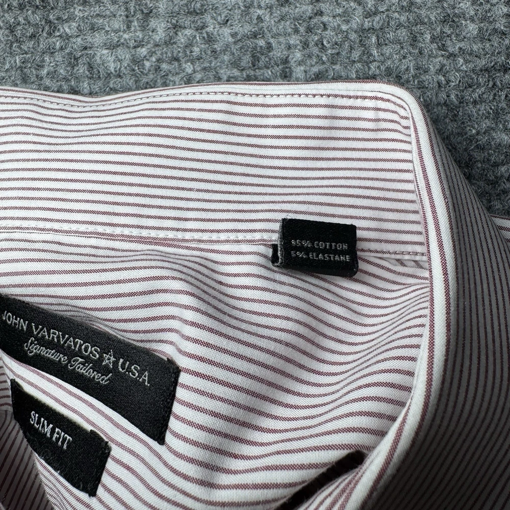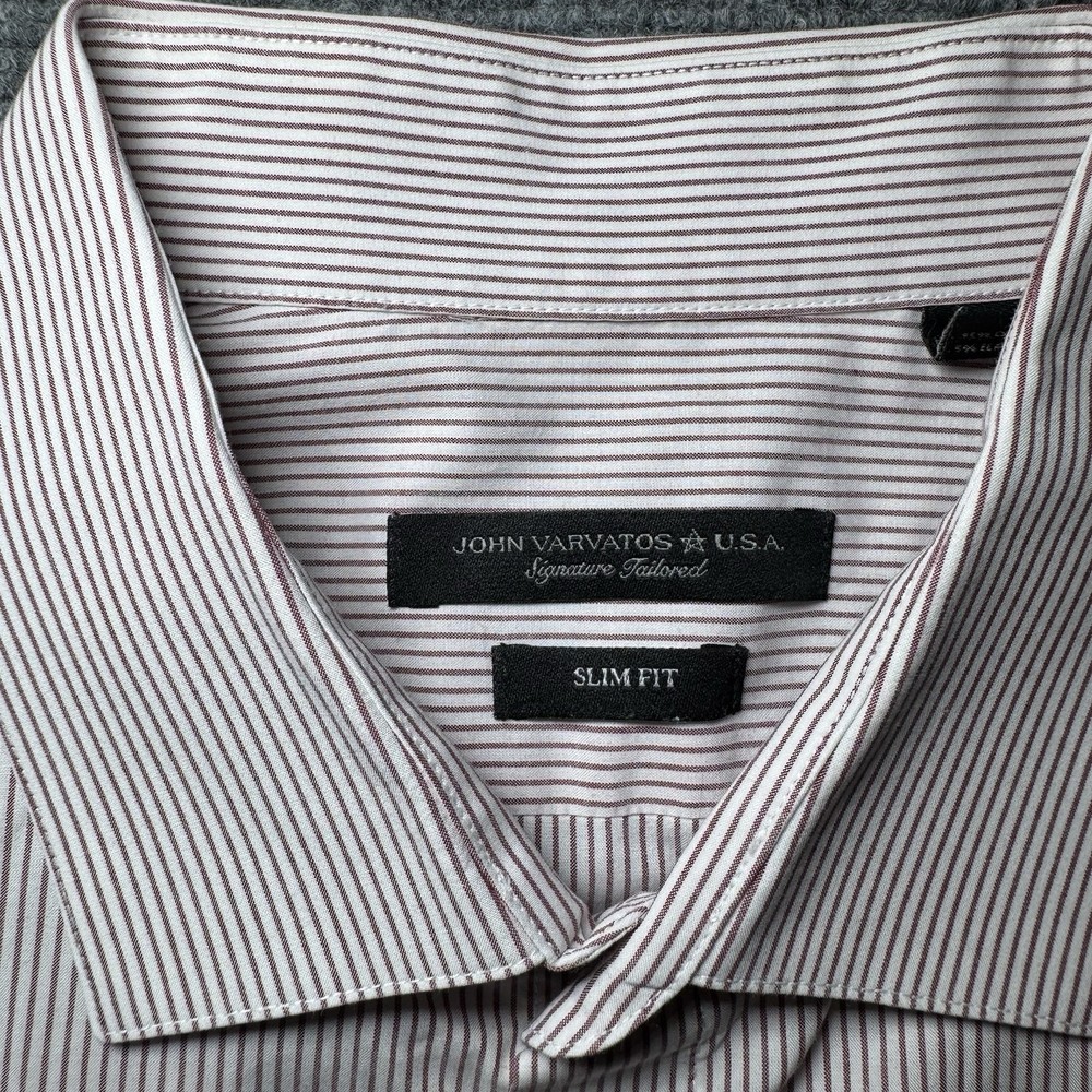 John Varvatos Signature Tailored Slim Fit Pinstripe L/S Large 16.5 34/35 Button Button up is in excellent condition as shown in pictures, size is also shown in pictures. Feel free to ask any questions about this item, all of our items come from a smoke free environment.
