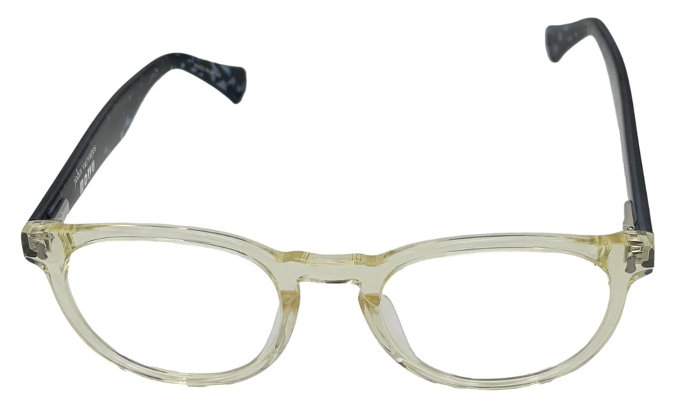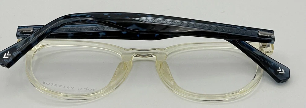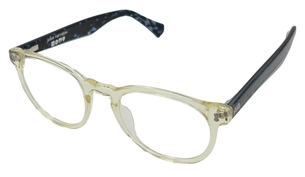 John Varvatos Eyeglasses Square Mens Yellow Crystal Plastic Eyewear Frame V416. 49mm Molded Plastic Nose Pads, Thin Blue Plastic Temple Detail, Size: 49. 21. 145, Height: 42mm ,Made in Japan, John Varvatos finish metal temple tips, Ships with a John Varvatos Eyewear Case and Cleaning Cloth Spring Temples, Ships with a John Varvatos Eyewear Case Regular Retail: $425.00 You Pay $99.99 The only one or two we have or will get You can take this to your doctor and have you prescription put in and save a ton on money You Pay Only $99.99 Now